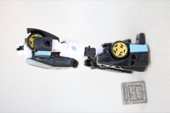 He's a joy to pose, especially with his accessories. Unlike any previous Armada Wheeljack, he has a two-part shoulder-mounted blaster with non-firing removable rocket. It's based on previous Sideswipe accessories. You can also put it in his hand. New to Shattered Glass Sideswipe and this Wheeljack are a couple of swords, modeled on projectiles, that he can hold or stow in car mode. It's hard to poo-poo anything here, every aspect of this toy seems like a good execution of the concept given a limited amount of new molds to maximize for repeat use. If Hasbro did an all-new mold, it might lose some of the niceties of the original Sideswipe design, particularly its transformation.