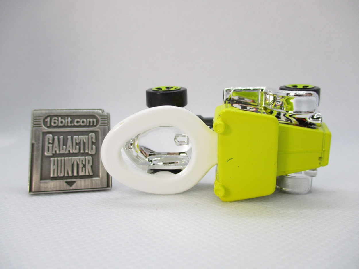 It's just here to pander to my love of a solid joke. Well, a liquid one - you'll notice the golden vehicle has a #1 on the sides. There's toilet paper on the license plate frame. It even says "GG" on the sides, in case you forgot that maybe you too gotta go. With chrome fenders and pipes plus big yellow wheels, this is the perfect car for kids. I don't know if adults want it, but also, this is of no import to me personally I want a toilet car, and I got one. There are multiple toilet cars, including the lovely Hot Wheels Scum Chums [#2,739] which includes a rat driving the Hot Seat. Delightful.