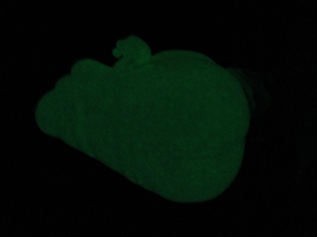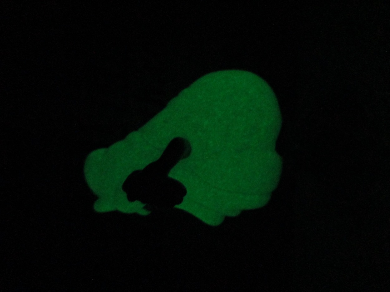 The chase figure and the regular figure look identical - I only photographed the glow one. It's a perfectly good glow color, not quite as bright as I remember him on TV. The eyes are black, the slime is this really nice glossy color. Unfortunately, like the Devo figure, the glow is pretty terrible. When exposed to UV LED, it's pretty weak. When exposed to a CFL bulb it charges OK, but the glow fades so fast it's hard to capture on camera. It needs the Sun to really get much out of it, and even then it's not super bright. The left arm not glowing is probably a fluke on my figure, but it's also just one more thing that would make me say you probably shouldn't bother chasing this one down unless you must have everything that can possibly glow in the dark. Your money is better spent elsewhere. I'm looking forward to seeing how Hasbro's Ecto-Glow "The Green Ghost" turns out in the coming months, as their figures react well to UV and amazingly to the Sun.