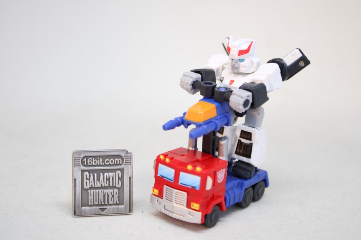 One of the things that made me really pay attention to this line when I saw it in a showroom in El Segundo last year was Optimus Prime Vehicle. A little truck with a little repair drone that turns the classic flat-nosed cab into a scooter for other figures to drive? That's adorable. I had to get a case. It's such a good idea.