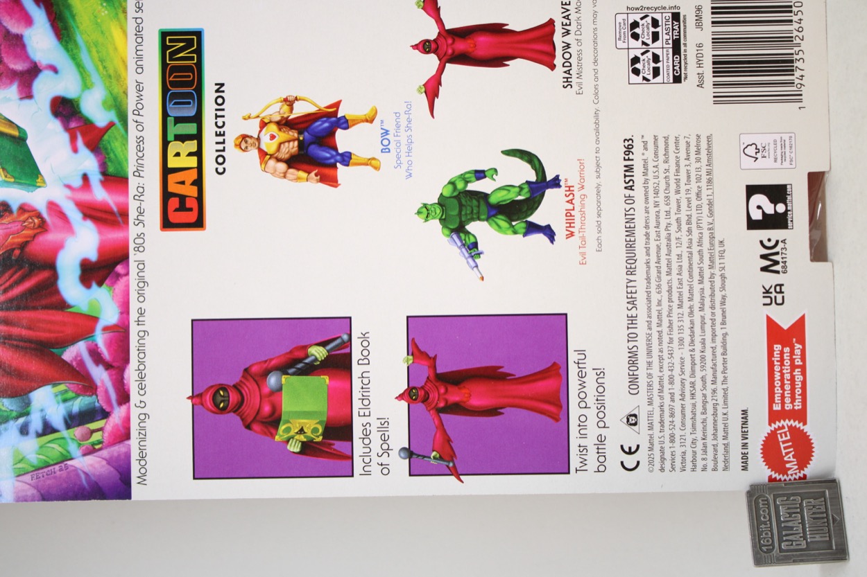 Mattel doesn't mention She-Ra or any Princess of Power on the packaging for He-Man and the Masters of the Universe Cartoon Collection, probably to make sure Shadow Weaver sells to He-Man fans who would be embarrassed about buying "girl toys." It's a weird thing to have shame about buying toys but it comes up a bit in collector spaces, as some people see their plastic people as collectibles or whatever and can't just have a good time. It's a shame, their life could be better.