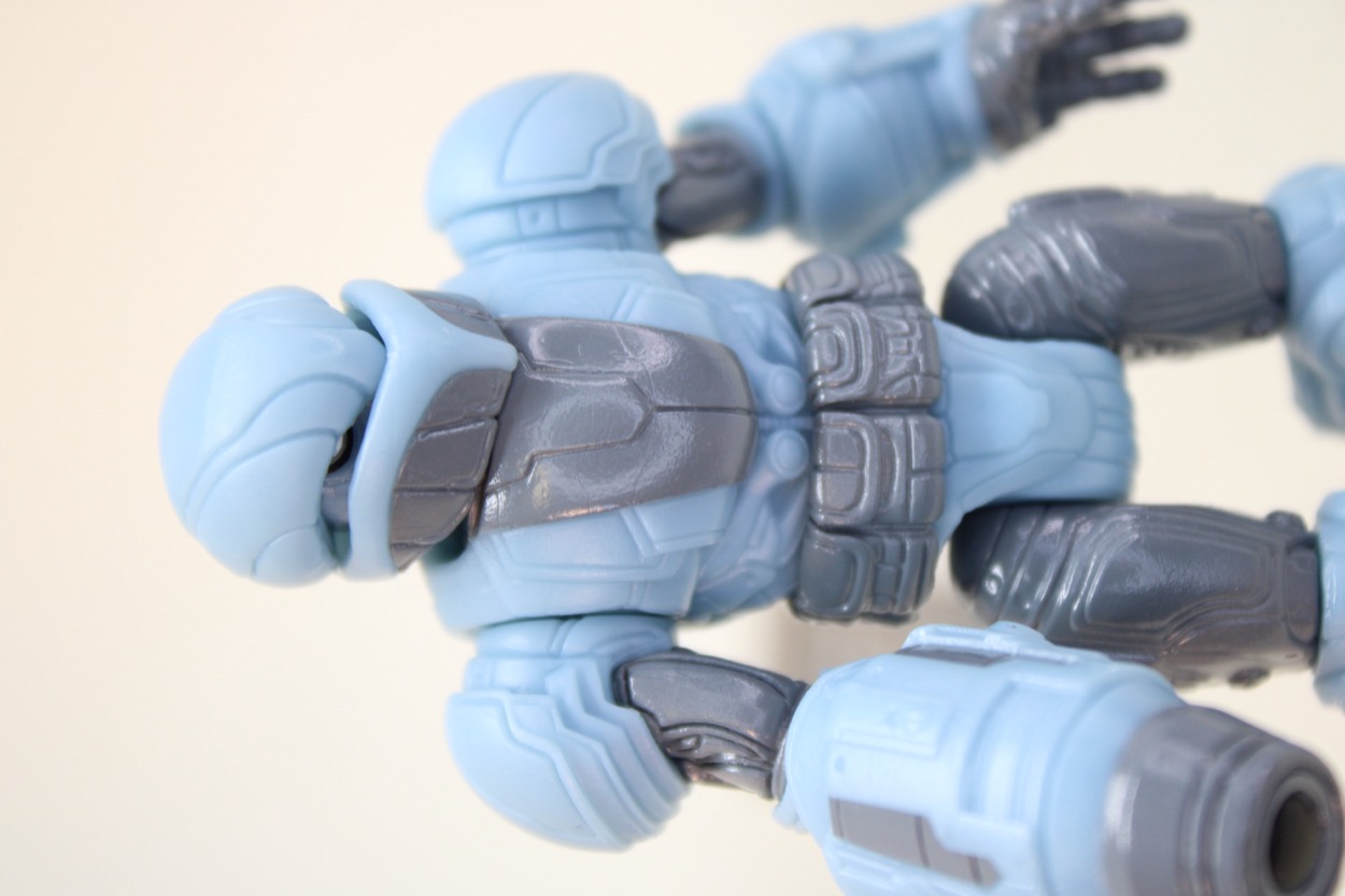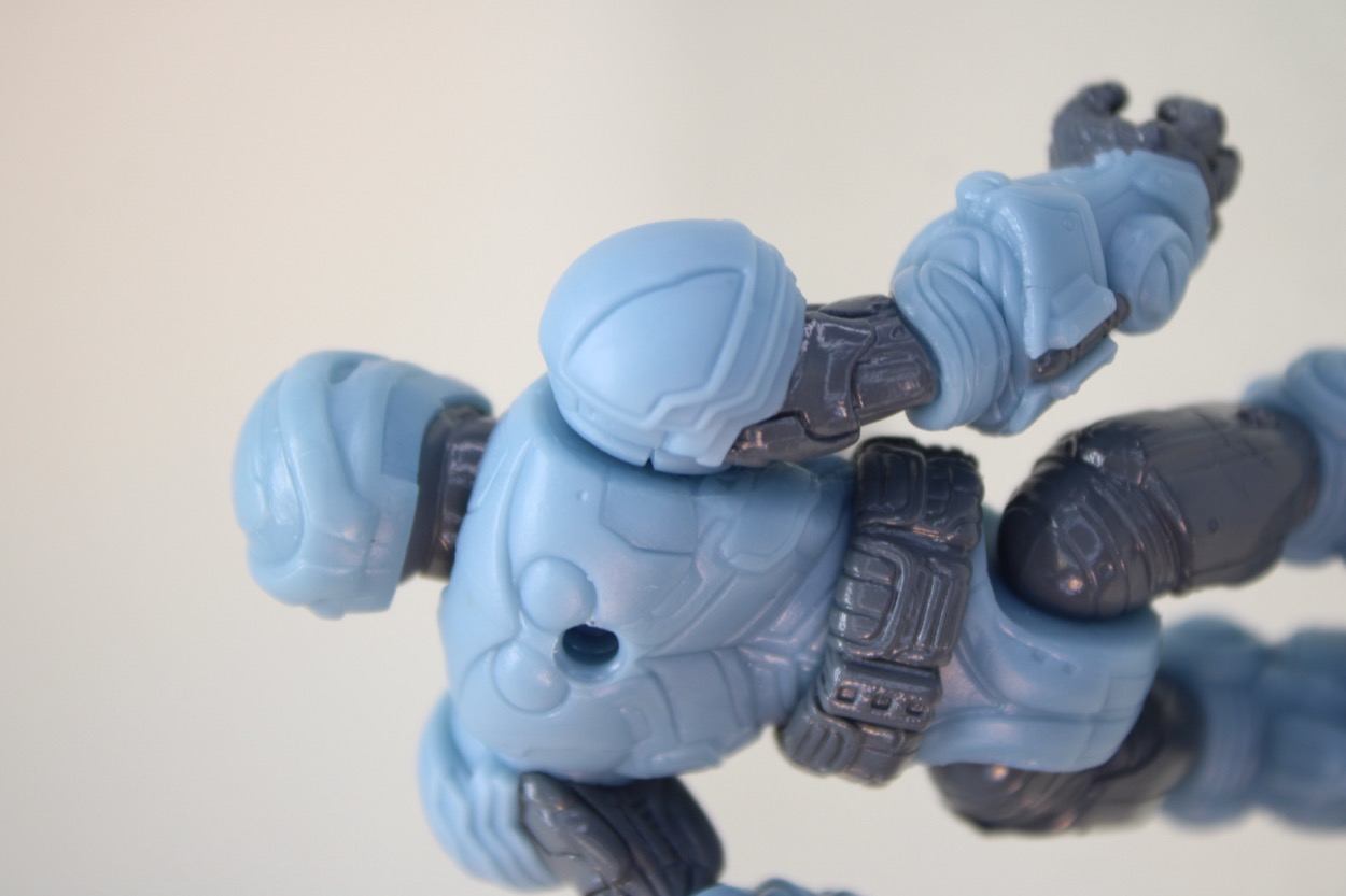 The new one is a little less stylized but feels more like a traditional action figure. Covered in panels with seams and the occasional rivet, it looks like something you might have had in the 1980s. You can see inspiration oozing out of every part, with distinctive fingers and rockets on the soles of his very chunky boots. The evolution is like seeing Mario Pheyden turn into Master Chief Pheyden, but the articulation and build are very similar. Each joint on the original Pheyden is replicated here. You can swap out hands, you can exchange torsos, you can trade shoes if you like.