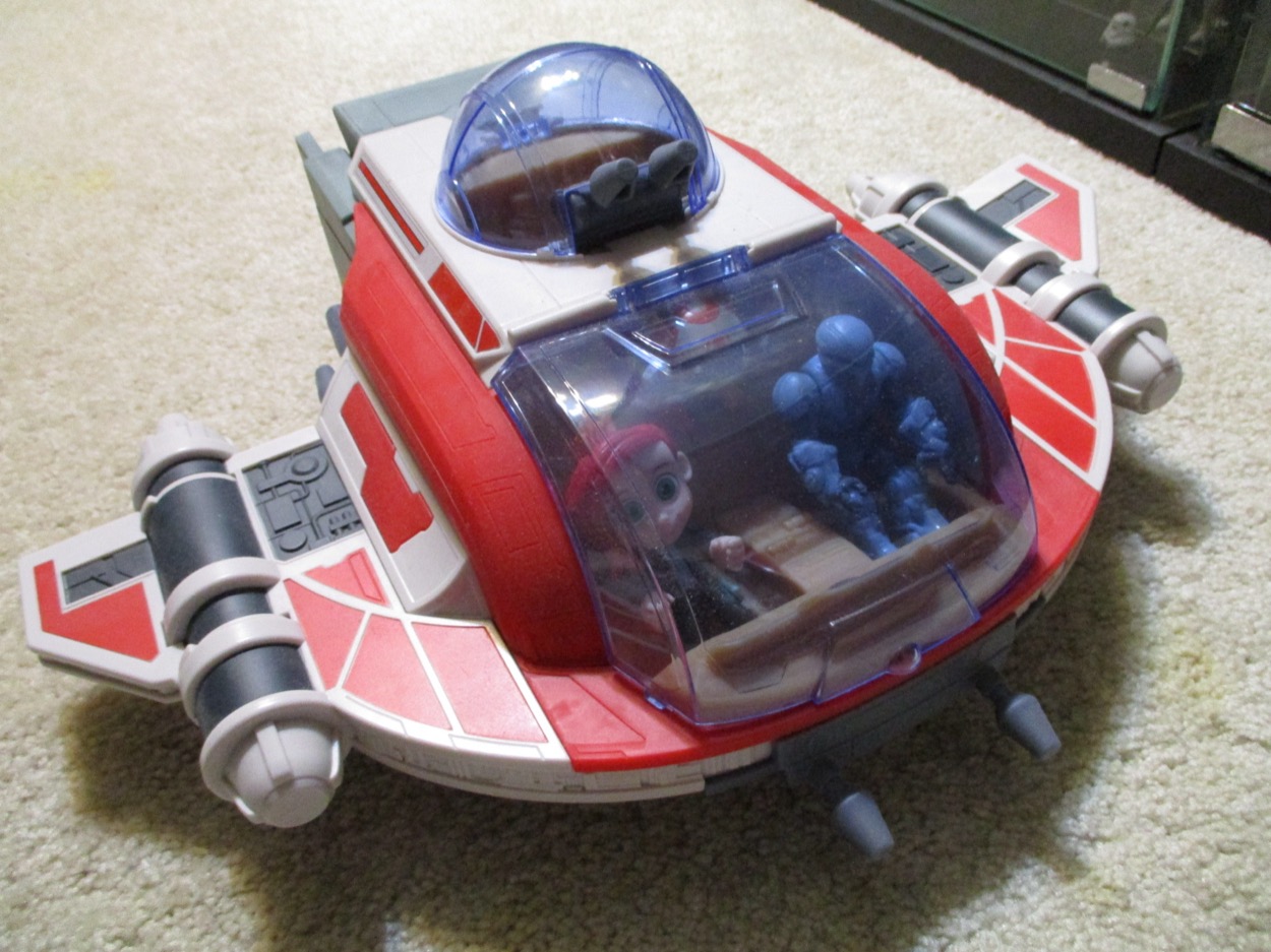 Due to his big feet, he won't fit in a lot of your existing toy vehicles. I got him in a Kenner PDT-8 without a fight, and you can get this not-quite 3 3/4-inch figure into the maligned Young Jedi Adventures vehicles without popping off his legs. They also have giant feet, and their bigger lightsabers fit perfectly in Pheyden's right hand. And if you're lucky, those YJA toys may still be on clearance near you somewhere.