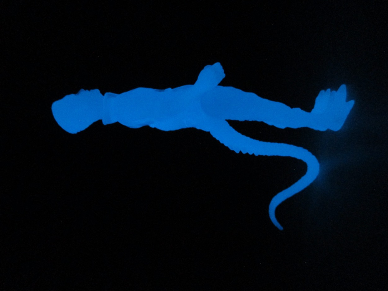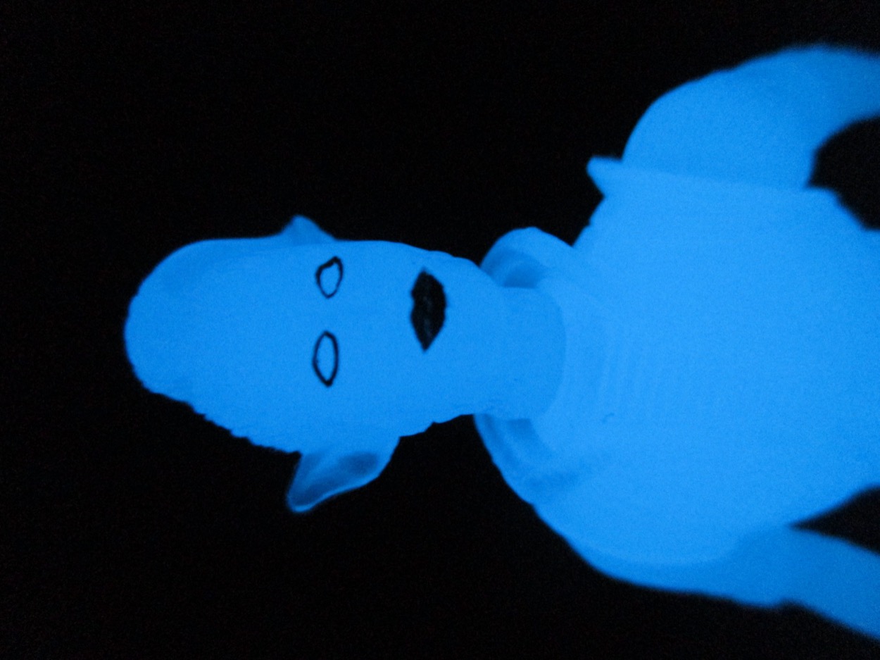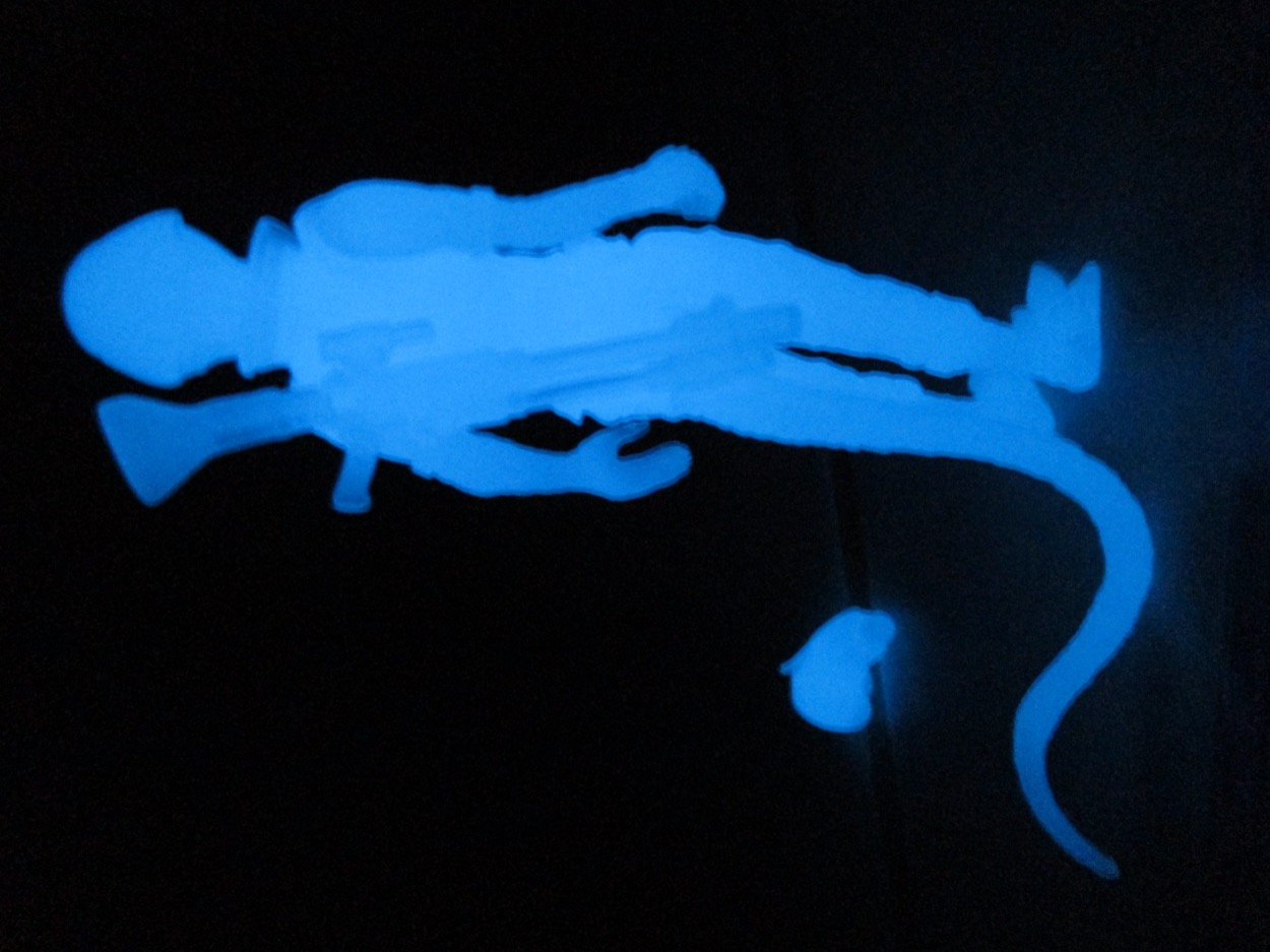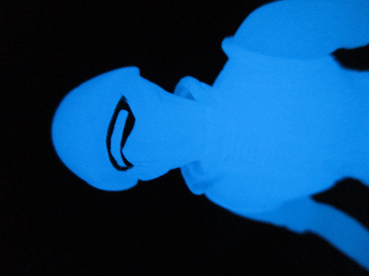 I had this Assassin (GID Blue) sitting on my photo shelf, unopened, since some point in 2022 or 2023. I just plum forgot to open it - it's a great figure and a nifty gimmick. The Glyos glow blue plastic needs a lot of help charging, but a brief stint in the Sun will keep it glowing so brightly that you might see a dim blue hours later.