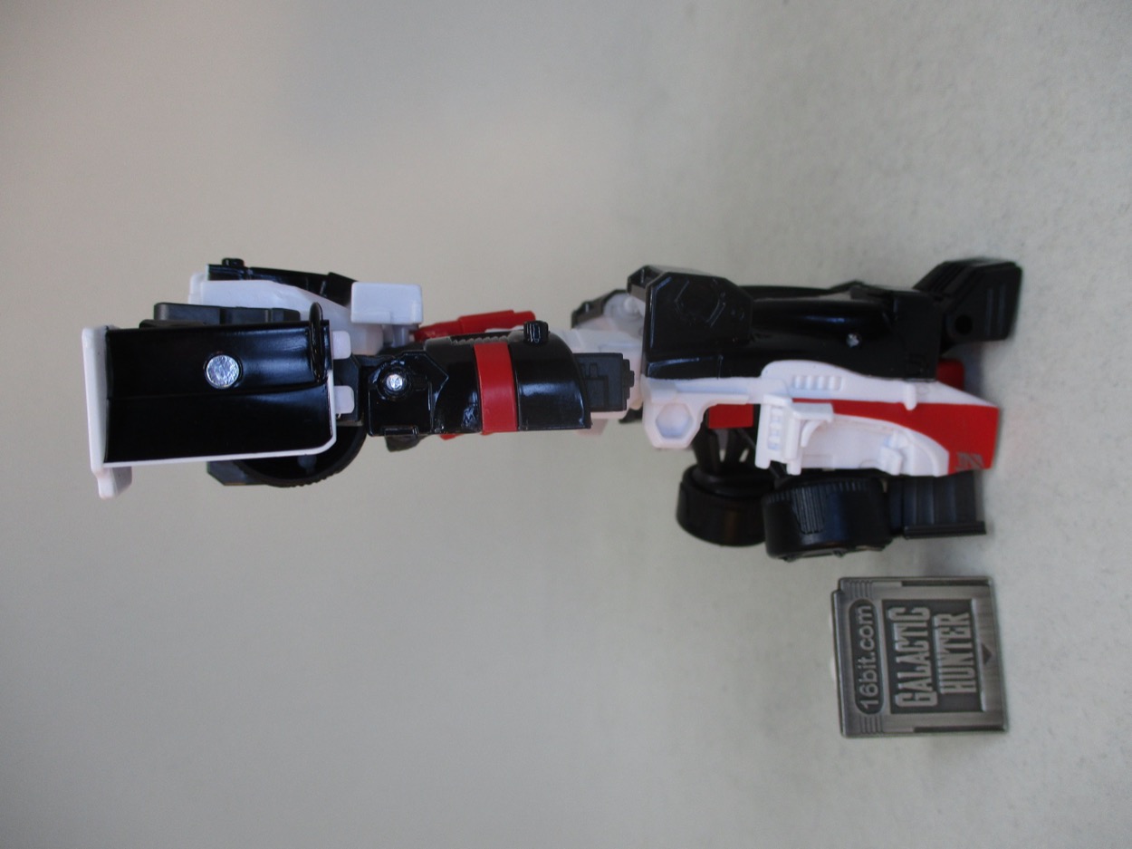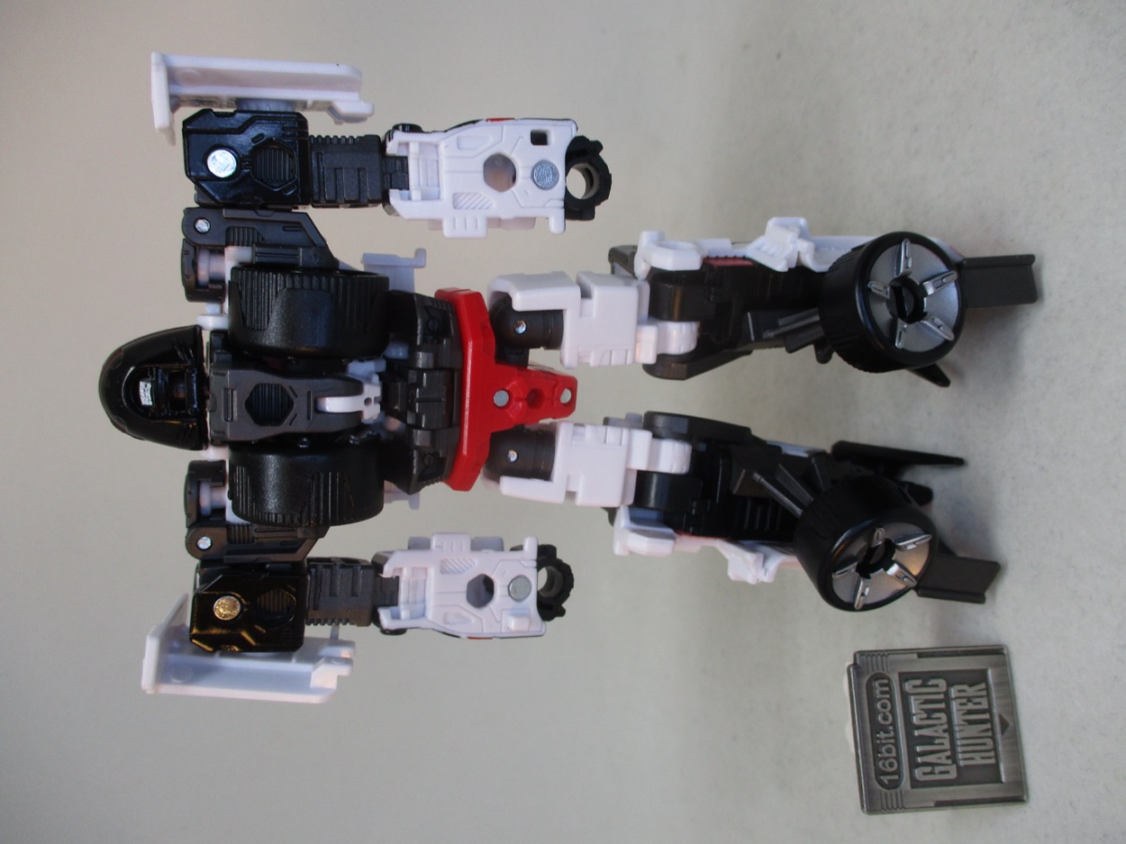 This toy applies GoBots Crasher deco to Siege Mirage, and the results are fun. The toy head is painted black and pink, while the body is mostly white with some black molded bits and a lot of glossy black paint. This one is as good as the other releases, with 5mm holes behind the arms to plug in weapons or she can just hold them in her hands. Deco is inspired by the original GoBots toy, with an 01 on her, but the colors are a little different. I assume it's different enough if someone gets angry, not quite matching the cartoon or the toy perfectly - but you get where they're going. It also leaves the door wide open for a GoBots version, if someone wanted to make one, but I assume that ship has long since set sail and nods to those toys is all you're going to get from here on out. Since I could always use more Decepticons, I'm happy to have something like this to add some variety to the shelves.