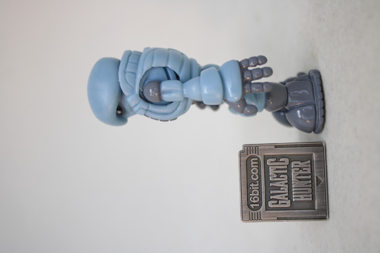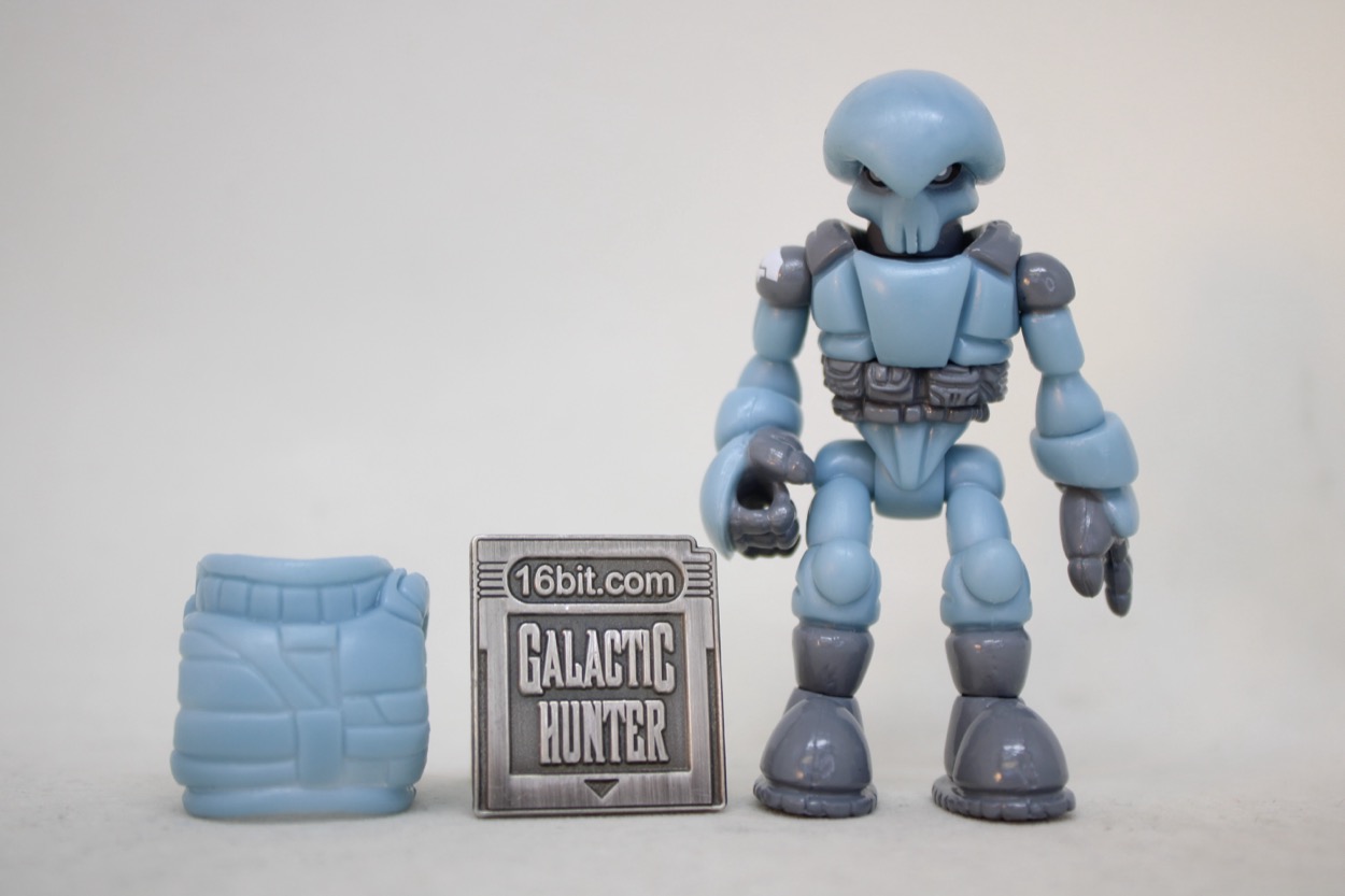 The 2 3/4-inch figure seems to be the same light blue plastic as the 2019 release, with a similar glossy gray. What's interesting are some minor changes - his guy has painted shoulders, the other guy had painted everything else. This guy has fully painted shoes, the other one had painted soles. The head had a scar and the chest had a line of the last one, this one has a painted belt. There are a bunch of minor changes, but it's effectively very much the same figure with a similar deco budget. The white Pheyden tampo on the shoulder is a nice new addition.