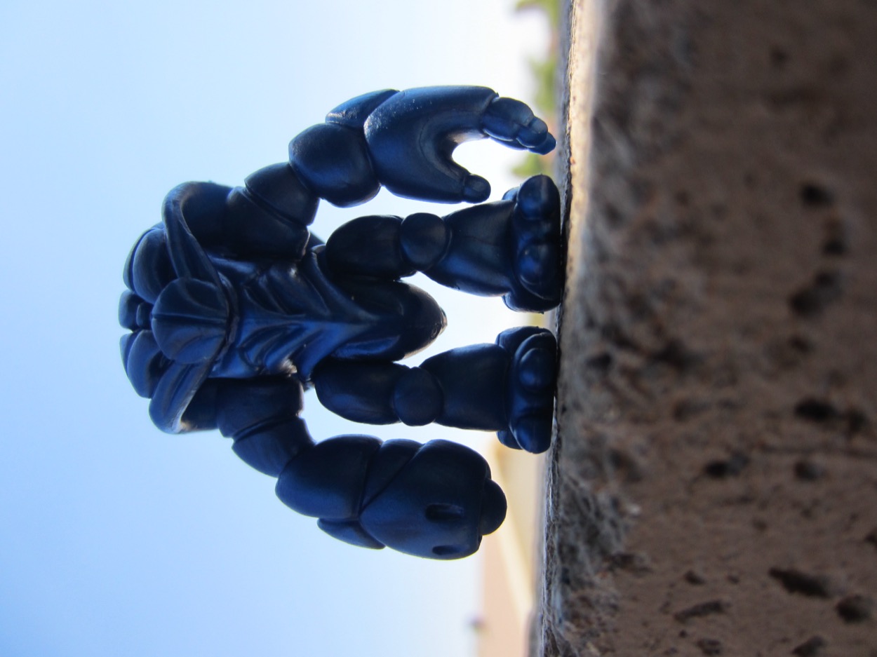 This unpainted freebie looks amazing, especially in the right light. The swirly blue plastic was also used to make Versirran Pheyden [FOTD #2,547]. I believe it was also used for Outer Space Men 2.0 Xodiac [FOTD #711], a figure worth rerunning if ever there was one. They all seem to have the same shiny plastic that brings out a lot of detail, although Xodiac's is largely covered in paint.