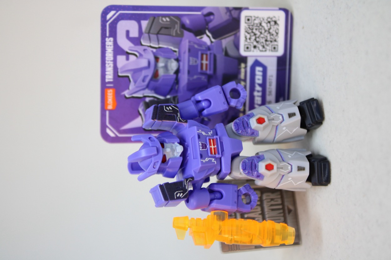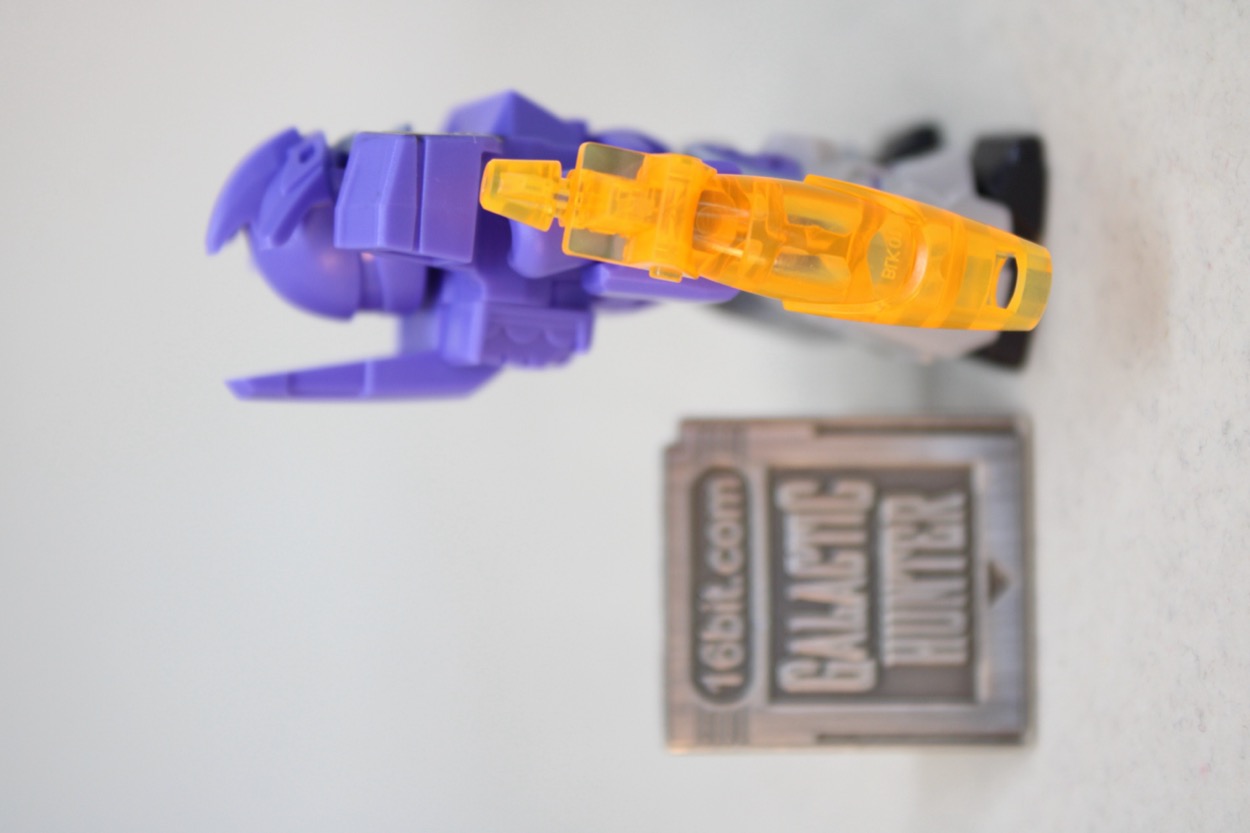 In each case of Blokees Defender figures you get at least one chase - this series it'll be either Jetfire or Galvatron. Since I found plain Jane Galvatron, I assume a fancy cool Jetfire awaits me in the next few boxes. It's a pretty great little figure, even without the fancy enhancements. He's got angry teeth, but sadly they're only painted white on the super duper chase 1:144 version. The orange cannon has a silver element on the back in both special versions... but the plain one is just orange. It's still neat, and I'd still have gone nuts for it about 25-30 years ago back when getting an oddly posed Super Collection Figure would be a huge win.