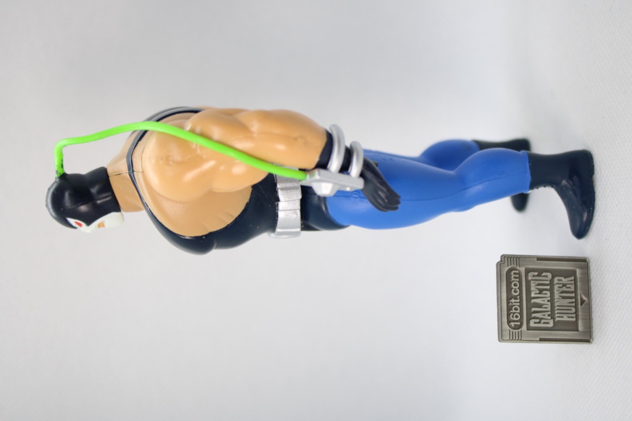The sculpt is incredibly smooth, just like the cartoon. Warner Bros. Studio Stores (also formerly at malls) sold a lot of super-fancy high-end maquettes of characters from the show, and while they were cool I failed to see the value in them when Kenner had these guys for six bucks. The poses weren't as cool, but also, they weren't $150-$200. Bane's sculpt isn't much more complicated than the line art from the show - you get a venom hose connecting his skull to his wrist, a belt, and some very basic muscles (with veins) and boot laces. It's a figure that looks incredibly powerful, and a little goofy, towering over other Kenner figures at about 5 1/2-inches tall.