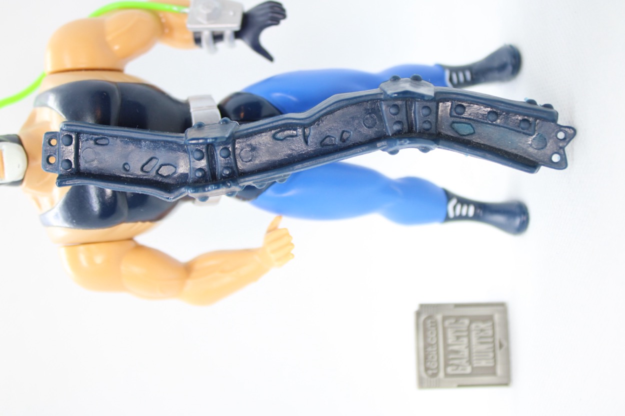With only 5 joints, the then-new character came out of nowhere in 1993 and would quickly find additional life in the cartoons, movies, and toy aisles. The overly-muscled character felt very much of his time, but this animated version was a little more timeless. The luchadore-esque character took on a mask closer to that of familiar faces like El Santo, with a visible mouth and a more expressive facial design. He's huge - easily the biggest chest in Kenner's line housed a spring-loaded mechanism. Rotate back the arms and lock them in place, and push a lever down to slam the arms down or toss a girder. Back in the 1990s most Batman toys had some form of action feature, usually built into the accessory, although some had spring-loaded limbs or a wheel-based mechanism.