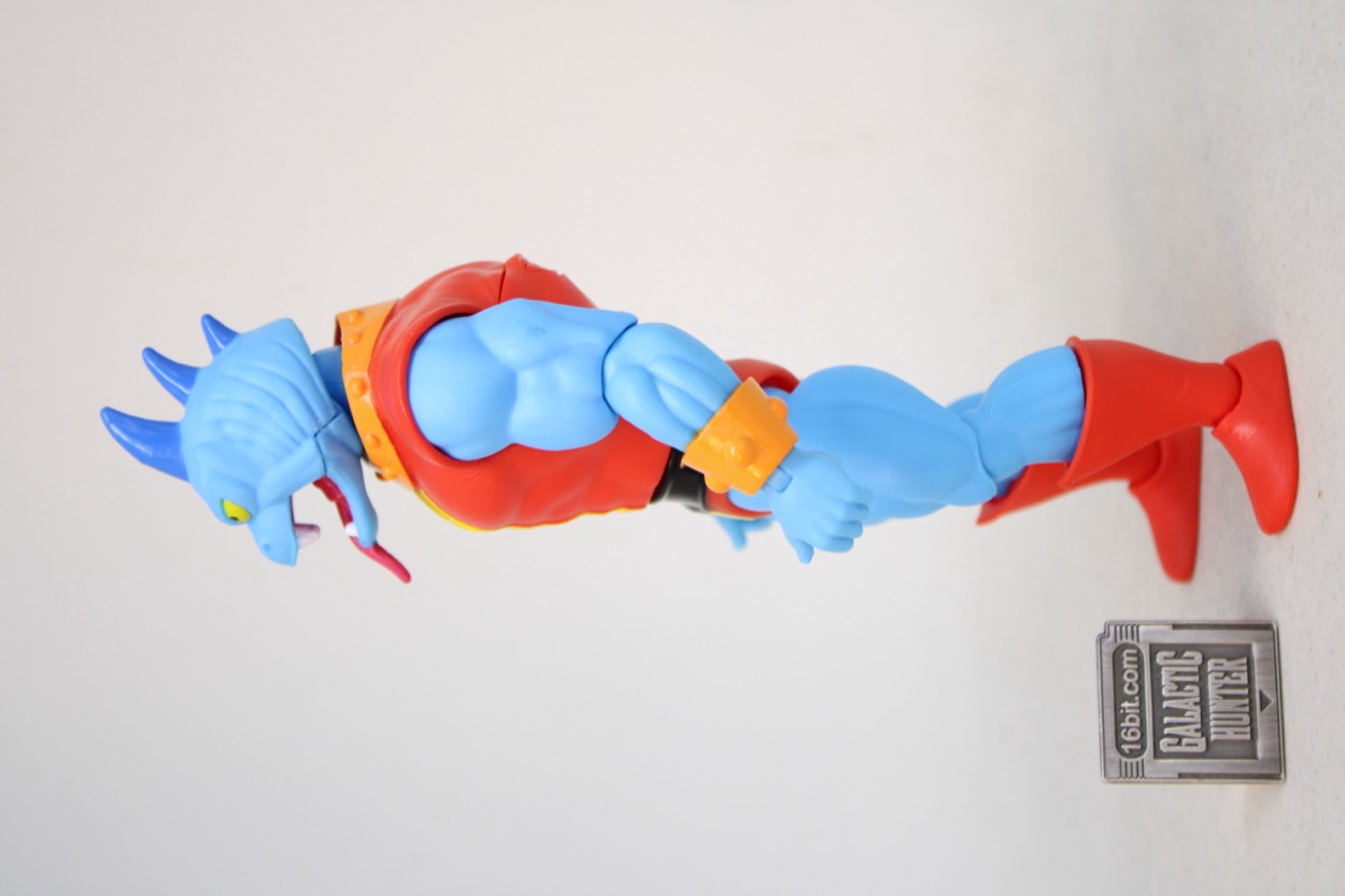 I assume this figure came up short due to budgeting. I'd probably do the same thing Mattel did... minus the head, I'd definitely give Reptilax a Fang Man head rather than the other way around. (Nobody would complain.) The seam in the jaw is a little ugly, too, but the colors are good. Articulation's fine. He can hold the Wheel of Time just fine. It's not terrible - it just gives a fan a lot to complain about. I'd say it's probably skippable unless you're all-in on the cartoon line (as you should be.) Mattel really knocked the line mostly out of the park - I've got a few quibbles. I wouldn't complain if they did some more "2.0" figures, like He-Man with a better wrist or Evil-Lyn with a cape... or Fang Man with a new head. There's a 3-pack I'd like to see for a store exclusive next year. I'd say get this figure if you like it as-is and don't give much thought to cartoon accuracy. It's still a cool beast, with bright colors and a vibe that's very 1980s via the late 1960.