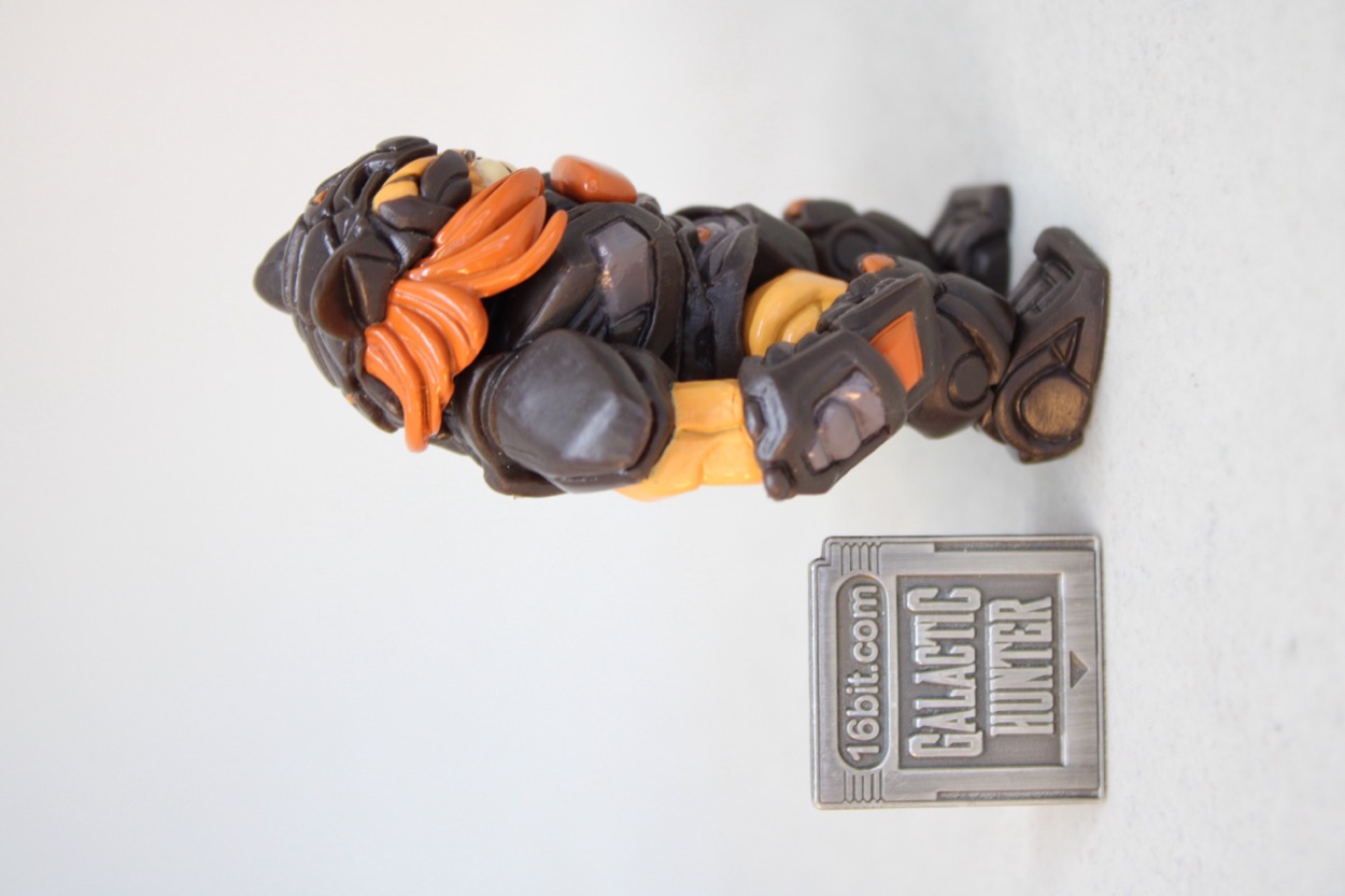 The stocky figure is a roughly standard-for-most-Glyos 2 3/4-inches high, putting him in line with Pheyden, Sarvos, and your Playmobil collection. Each of his many joints not only swivels, but he pops apart. You can swap his limbs and various elements with the thousands of other Glyos-compatible figures released over the last couple of decades. Also, if you buy Funko Bitty Pop! figures, he's sized to stand at those arcade cabinets quite nicely.