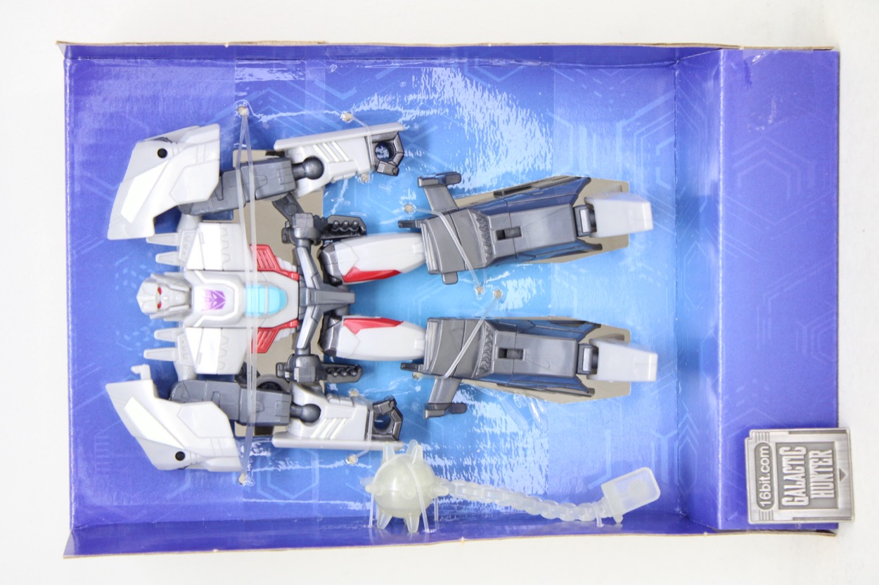 Target's seemingly exclusive Transformers EarthSpark Cyberglow Megatron is a redeco of a Warrior-class toy. A normal Warrior-class toy is around $15, this one was $20, and of course I bought it immediately. They put it in a more traditional box, so it looks like a Deluxe toy, but is not one, and I doubt people are going to notice.