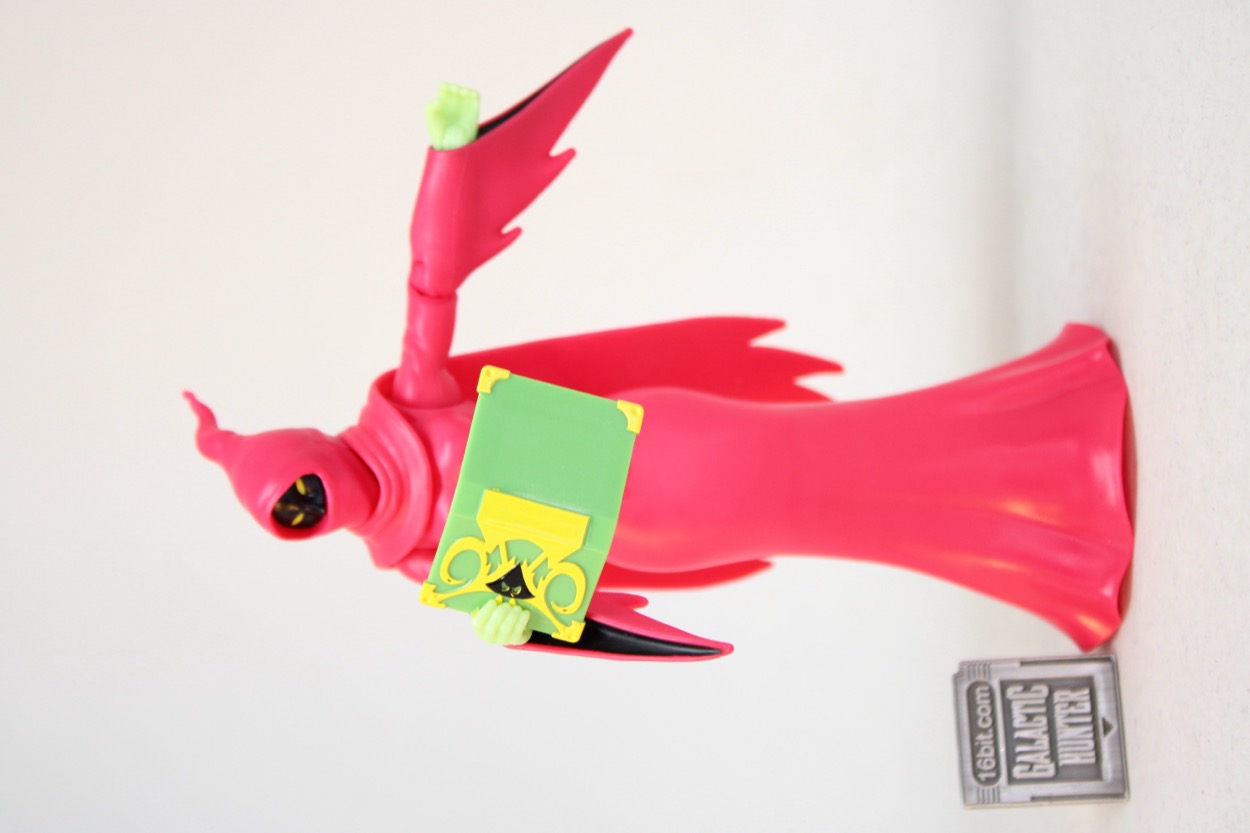 The Dark Mistress of Magic has two accessories. A magic wand is molded in gray with a few painted black bands, closely matching Super7's retro figure. The Book of Spells also matches her first Mattel release, except this one is open and you can see some pages. Mattel did a great job, molding the cover in green and the pages in white. The printing is sharp and crisp, with cleanly painted black and gold details on the green cover. She can hold both accessories without much difficulty.