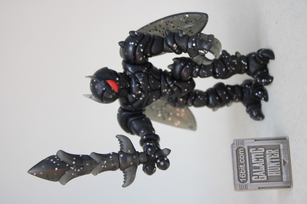 A nifty new mold - which you've seen in a few colors. The first version of this figure was the Void Sectavorian, cast in translucent black glitter plastic with red eyes. I like it, and I'll probably buy one or two more depending on which colors we get. I really like this one, especially if you plop a silver head on it. It looks pretty amazing, reminding fans of the 1980s toy world just how many bug toys we got. Sectaurs, Buzz-Off, Baxter Stockman, Insecticons, and many others probably had a little influence on this guy. Heck, his alternate head reminds me a bit of Kamen Rider too. There's a lot to play with here.
