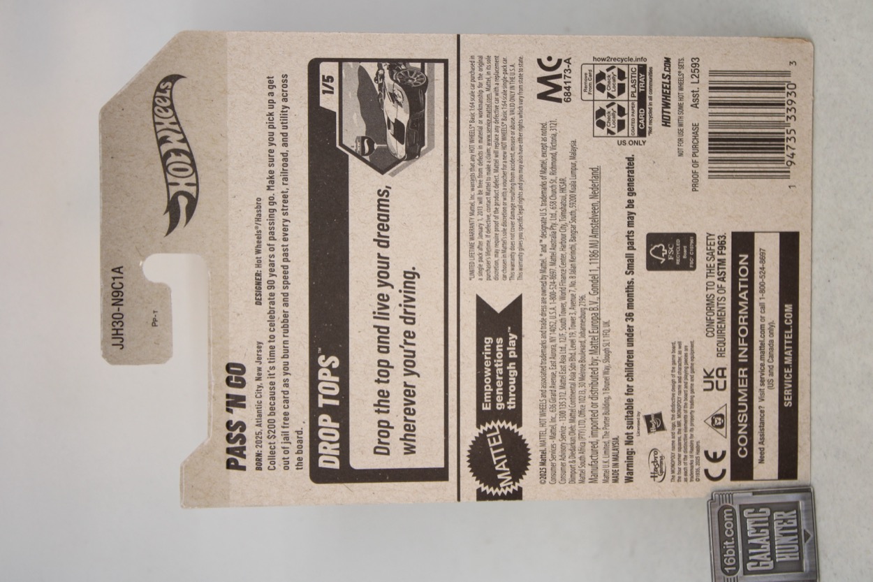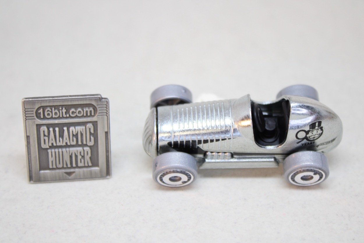 Mattel Hot Wheels Pass 'N Go Die-Cast Metal VehicleMattel never ceases to surprise me. Now that they're palsy with Hasbro, we got a 90th anniversary of Monopoly car with Pass 'N Go. Mattel could have sold this one unpainted - and I'm sure, will do that - but for now it comes in mostly bare metal with some black stripes and an anniversary logo. It's awesome. Get one if you find it, it's an incredibly satisfying feeling chunk of metal.