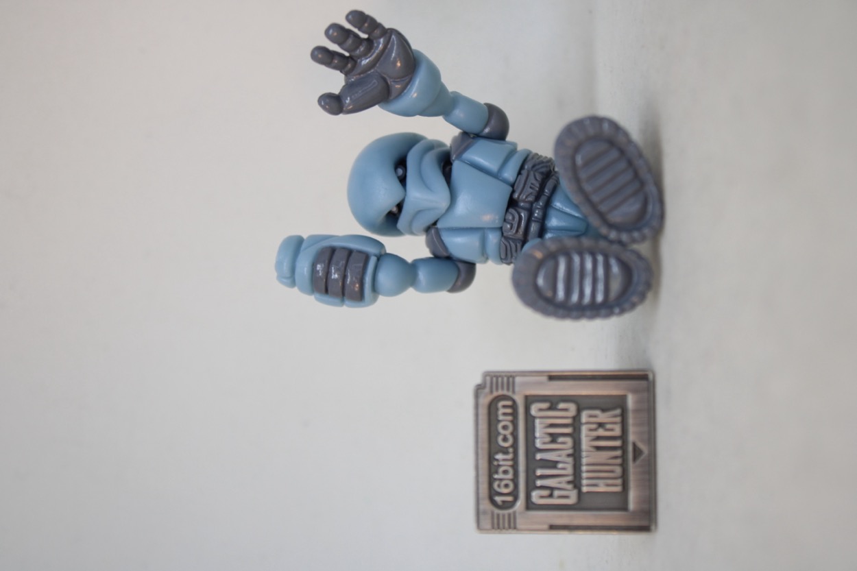 The 2 3/4-inch figure seems to be the same light blue plastic as the 2019 release, with a similar glossy gray. What's interesting are some minor changes - his guy has painted shoulders, the other guy had painted everything else. This guy has fully painted shoes, the other one had painted soles. The head had a scar and the chest had a line of the last one, this one has a painted belt. There are a bunch of minor changes, but it's effectively very much the same figure with a similar deco budget. The white Pheyden tampo on the shoulder is a nice new addition.