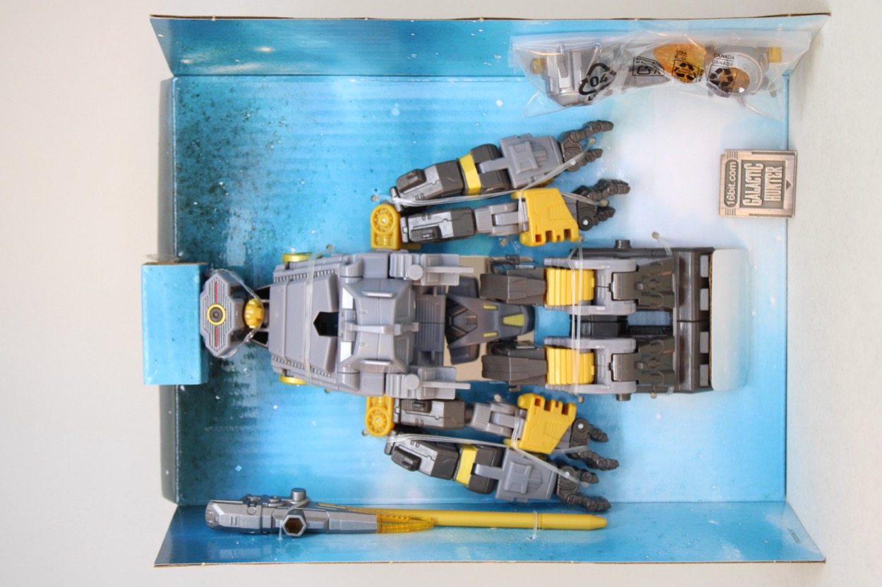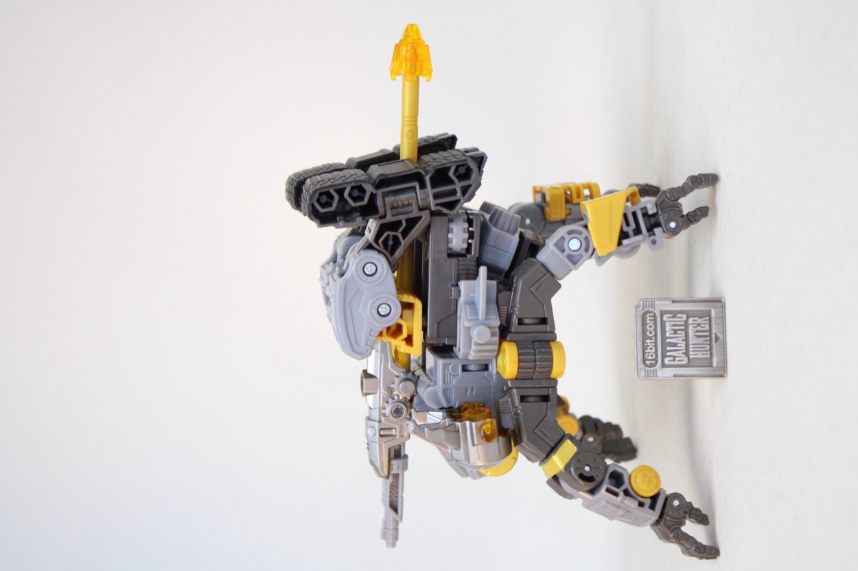 Very few robots have four arms, fewer with multiple arm joints plus wrists that can swivel or also bend down. The big feet help grant him unmatched stability, and each limb is positively loaded with moving parts. The level of detail is consistent with the line, and it's light on gaps which fans may obsessively need to fill. With all the limbs and separating pieces, that budget had to go somewhere and this one was developed before tariffs were official. I don't doubt future Voyagers will be made with different standards, but this one seems to be a fairly decent-looking, oddball robot that doesn't behave like the rest of the line. Also, I had parts constantly pop off from moving them - the head, the arms, the legs, everything just easily separates. It's part of the toy's gimmick, but it's also kind of unfortunate. Other lines with pop-apart figures (Glyos, Xevoz, etc.) tend to hold together a bit better and it's absolutely going to dump cold water on my fidgeting with the toy. I don't know that I've ever been able to move the head without it coming off at least once.