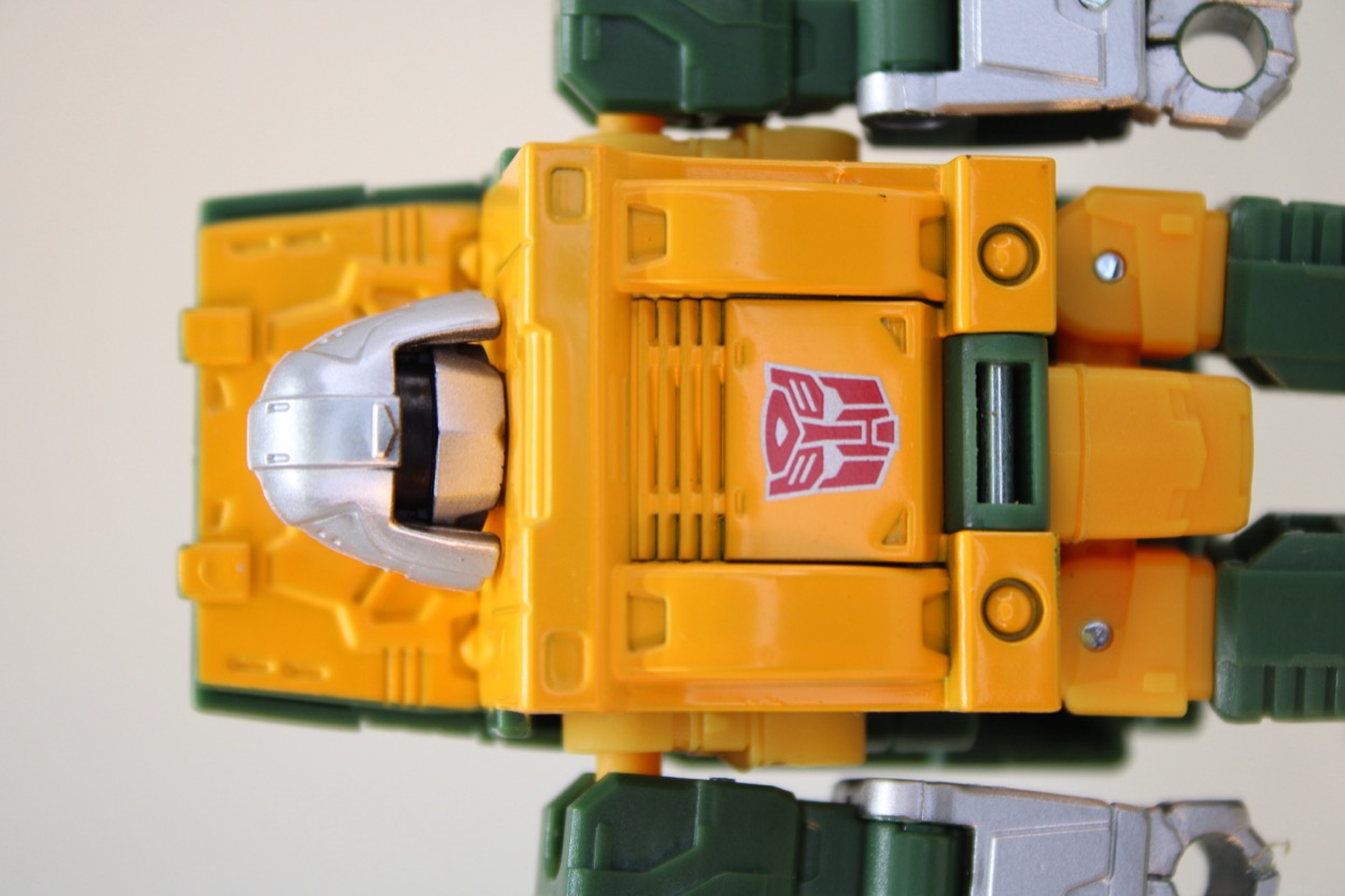 In terms of plastic, Hasbro made Brawn greener this time. Most of the yellow matches the previous release pretty closely an is more paint than petroleum. If you have other versions of this mold, your interest in it will probably rely primarily on if you had the original as a child. (I did!) If you like, you can rotate up his car grille and make a "bonnet" sort of like Huffer, and I think it really drives home the "toy" look a little bit more. Someone I know sent me a file of 3D printable hook hands last year which I'd love to use, but I don't have the tool to knock out the pins as of yet. I don't know if I want to knock out the fists necessarily, but if I can get a second one on clearance? Maybe I'll go get one of those pin-knocker-outers.