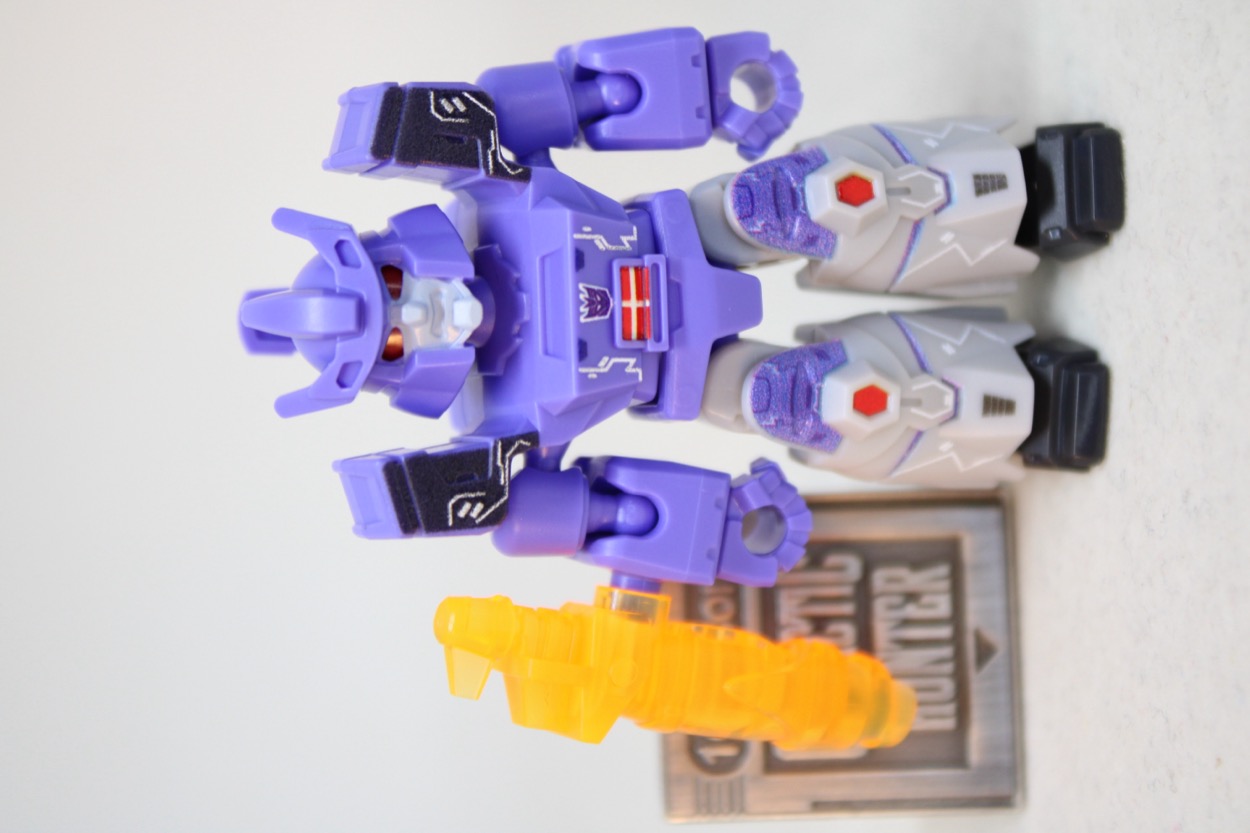 In each case of Blokees Defender figures you get at least one chase - this series it'll be either Jetfire or Galvatron. Since I found plain Jane Galvatron, I assume a fancy cool Jetfire awaits me in the next few boxes. It's a pretty great little figure, even without the fancy enhancements. He's got angry teeth, but sadly they're only painted white on the super duper chase 1:144 version. The orange cannon has a silver element on the back in both special versions... but the plain one is just orange. It's still neat, and I'd still have gone nuts for it about 25-30 years ago back when getting an oddly posed Super Collection Figure would be a huge win.