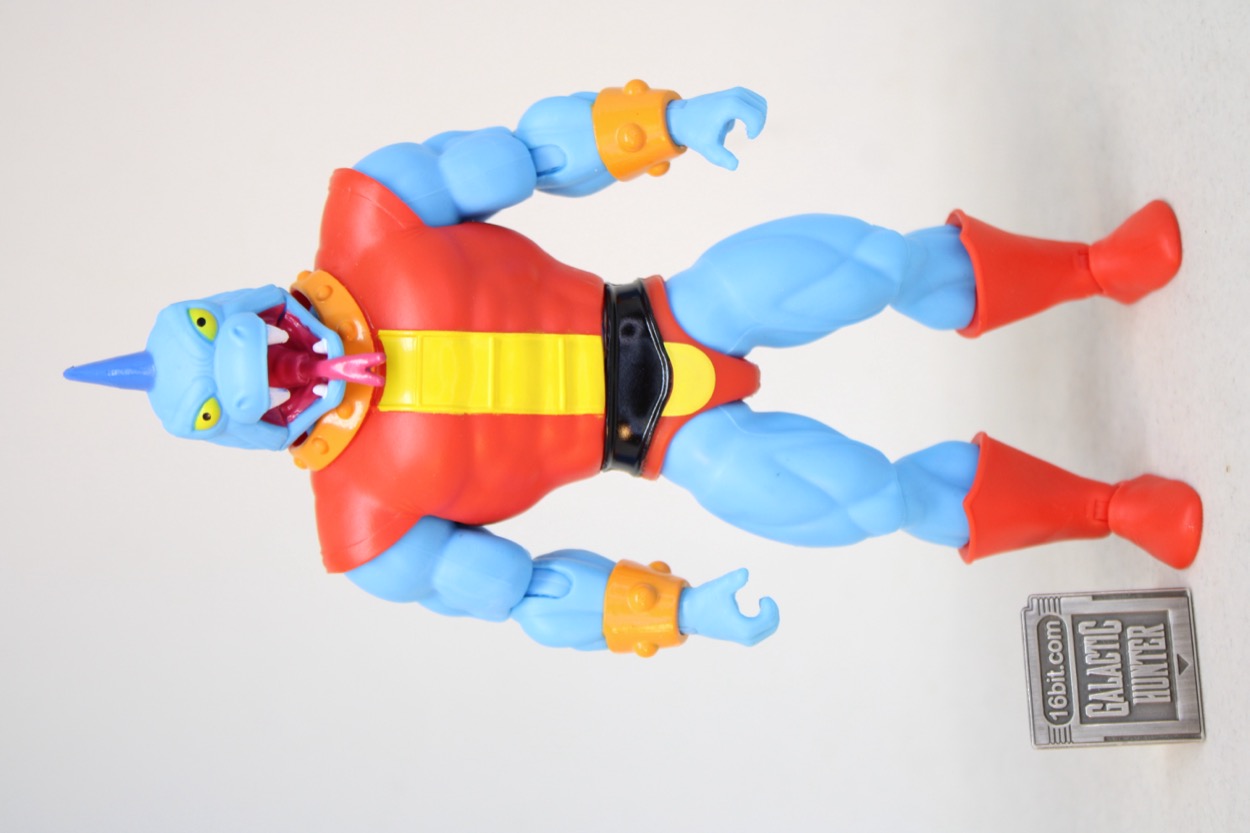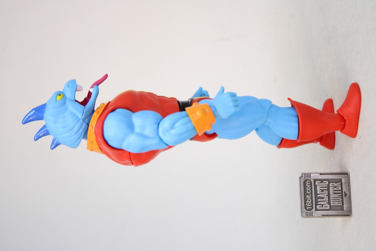 Most of the Cartoon Collection releases take steps to sort of merge "cartoon" with "toy," with small details that really drive home the point that this is a different figure... or more importantly, a reason to shell out twenty bones on a toy you already own. Maybe it's a new accessory, a color change, or a smirk, but each figure has been giving new heads and new stuff to make you feel like that answer is "yes." The Fang Man figure, on the other hand, has a shortened muzzle, eyes that look in slightly different directions, shorter head spikes, and arguably too much detail. I'm pretty sure the cartoon lacked lower fangs. He definitely had ears. This figure has gills, but the Matty version didn't. Also, the posture on the cartoon and previous figure was a bit more slouching forward.