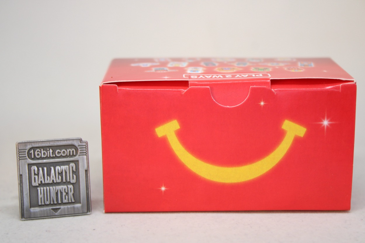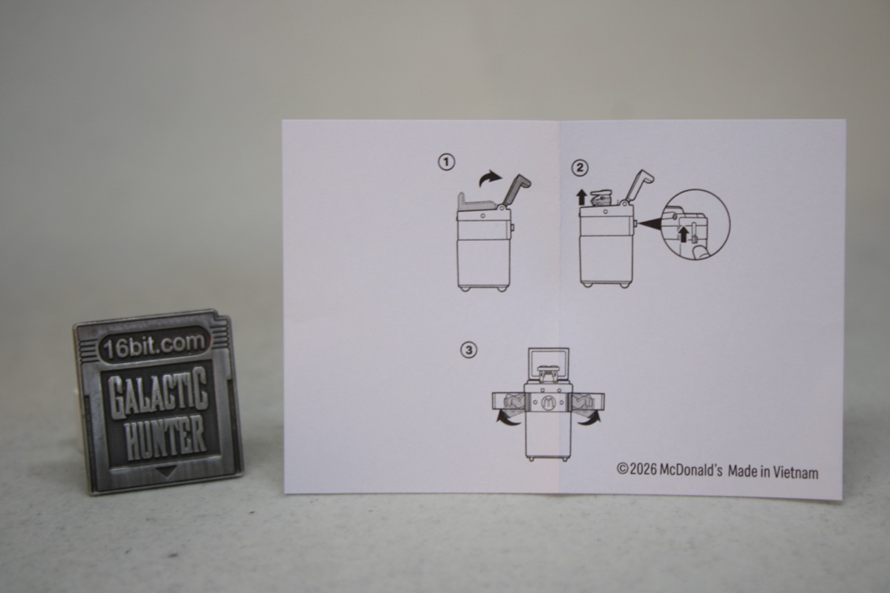 I grabbed a handy Kenner Admiral Ackbar on my desk as I type this, and his baton hand is about right to spatula up some burgers. Well, the right height. You're not going to get any meat with a ringed stick, or at least not in a way that can be described while maintaining any semblance of a site for all-ages. The 3 3/4-inch-ish scale grill has an opening lid revealing two cooking, tiny hamburger patties. If you bought this toy, you will be reminded that what you ate was only marginally larger, and you are likely still hungry. There are knobs on the front as well as a big yellow M in a sea of red. It is worth noting that Admiral Ackbar also seems dressed in McD straw cosplay pants.
