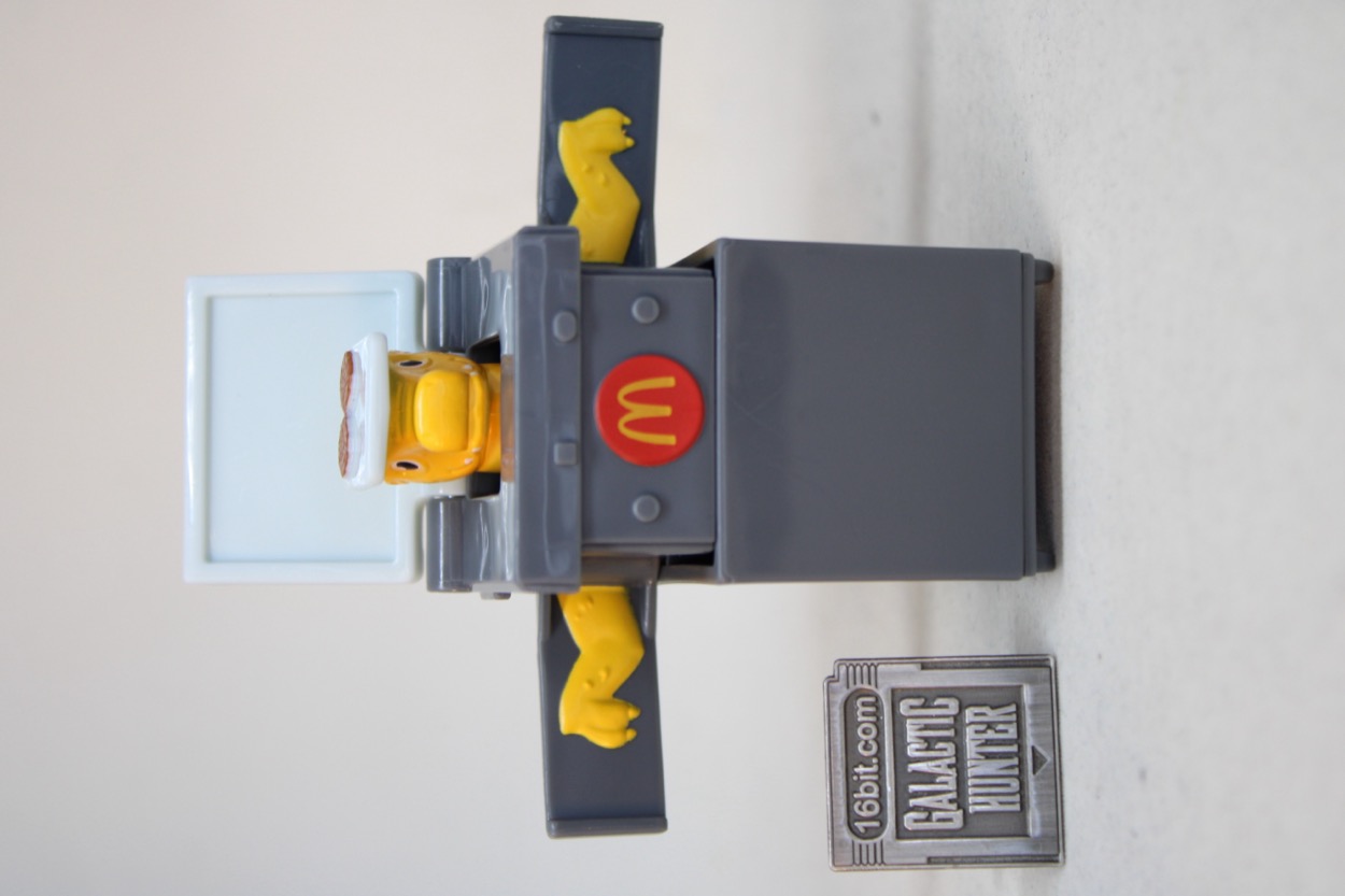 Having a big gray box grill would have been enough to get me to eat there. It's silly, it's fun, it might not be in my collection forever. As a toy, it's doing its job - I am amused. There's a lever on the back that makes a dinosaur head pop out. There are tabs on the side that pop out the arms. There's no articulation to speak of, and putting a dinosaur inside appliance armor does not necessarily enhance it as a top-notch play experience. But it certainly is weird, and having creatures attack you from inside a McDonald's seems like a genuinely funny premise for a horror movie nobody will ever make.