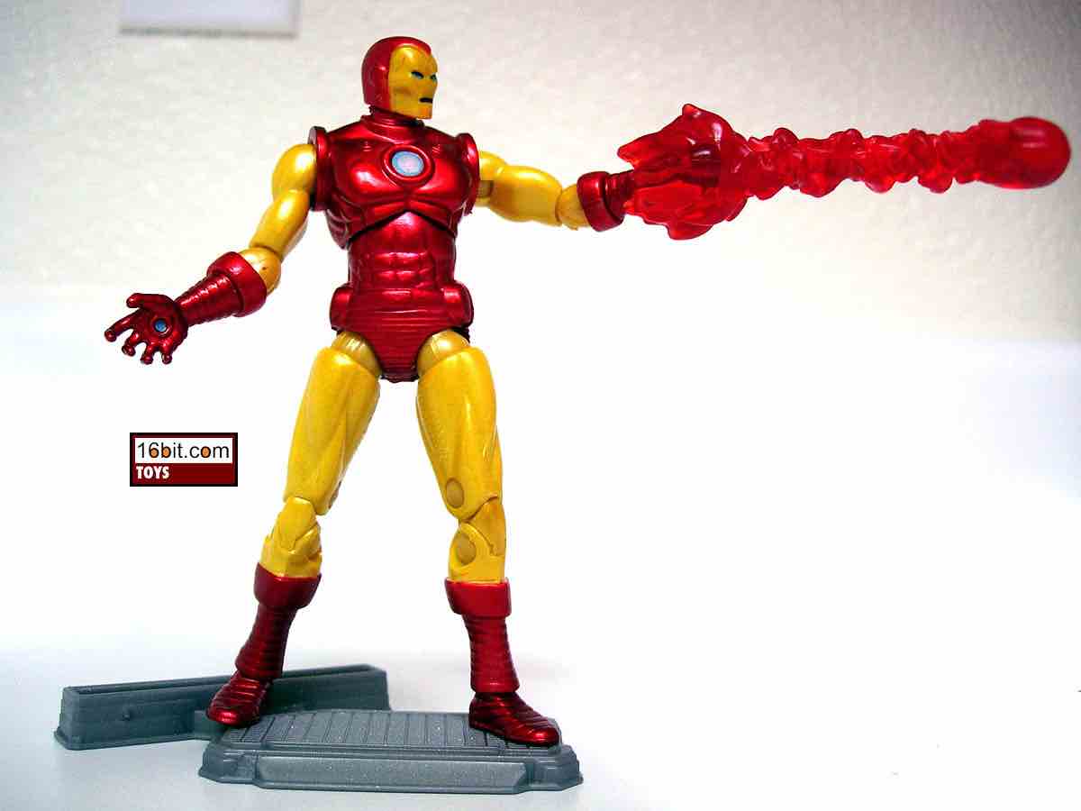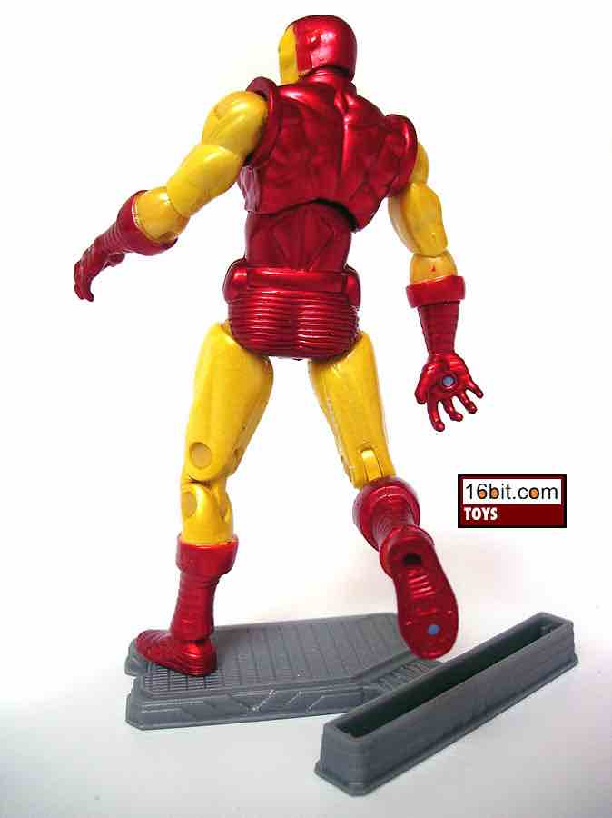 This 4 1/4-inch figure is jointed at about 14 places, but with all the double-knee joints and fancy hips you could probably round up to 18 points of articulation. Capable of assuming tons of awesome battle poses (although not really good at sitting), this is probably one of the best Iron Man figures you can get. Its glossy and metallic paint job covers a muscular frame with lots of detail. For example, his crotch and butt have horizontal lines on them. I presume this is to make the suit fly faster, as he also has painted jets on the soles of his boots. The amount of detail here is really excellent, and it's clearly superior to Toy Biz' similarly sized offerings.