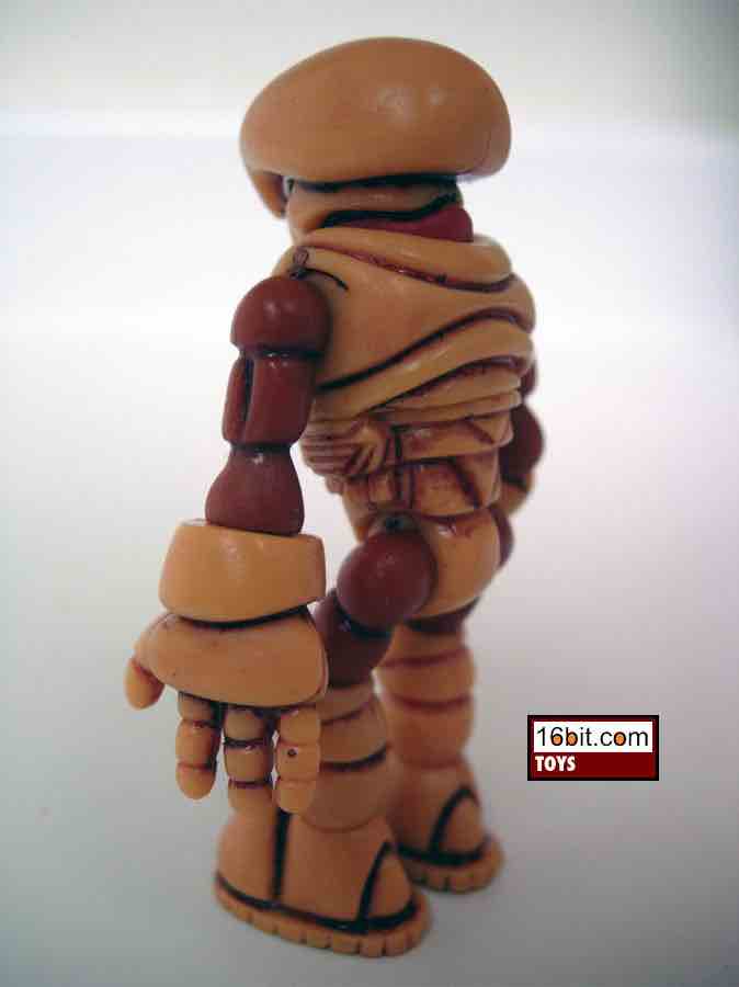 Since Onell Design's Glyos System figures are an original concept, it's unlikely you will seek them out on your own. There's no TV show or major media tie-in, but there are some NES-throwback Flash games and these are actually good desk toys. If you get a few of them-- and at the price, you should-- you can swap their heads around or arms and make something else. While someone is babbling at you on the phone, you'll have something to do, which is important. They're effectively a hybrid between Xevoz/Stikfas construction, 1980s action figures, and the ubiquitous Little Rubber Guys-style figures like MUSCLE and Monster in my Pocket. The sculpting is good and the painted detail is light, but it's a great example of a well-made low-cost plastic toy. Because, you know, you can play with it and it won't break easily. You could toss it at a wall, and it should be just fine.