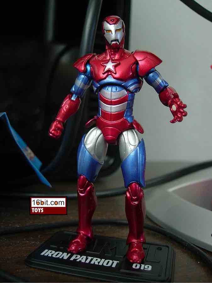 This figure is super-articulated and turned out very well. Like most Iron Man figure, there are repulsors on the hands and feet which are painted a unique color. Due to the unique construction of the figure, Iron Patriot has a whopping 20 points of articulation. The construction of his hips will prevent him from doing much sitting, but let's face it, that's not what you buy this kind of figure for. The metallic deco is really nice and I hope it won't flake off with time. It's a really nice looking release of a fairly significant character from Marvel's current storylines, and as repaints go he's pretty nice.