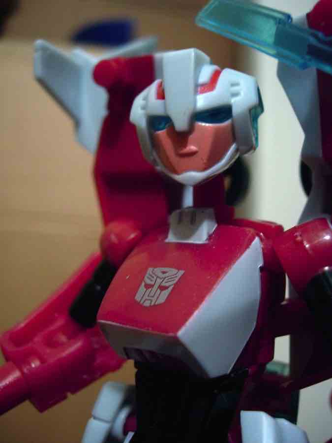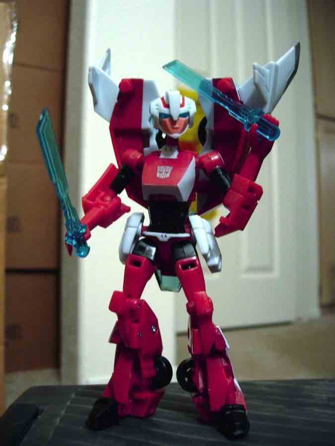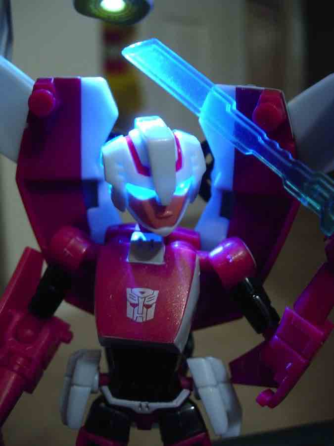 Generally speaking Transformers don't have boobs-- especially not the female ones-- so Arcee is something unusual. Since it takes a classic (and underrepresented) character, it should be something any Transformers fan or Hajime Sorayama would approve of, we would say. She holds her swords well, the wings are easily brushed aside if you don't like them, and her head has an excellent range of movement. Until Hasbro releases the best-ever "Classics" or "Generations" Arcee, this should be a great substitute and an excellent addition to your toy stash in its own right.