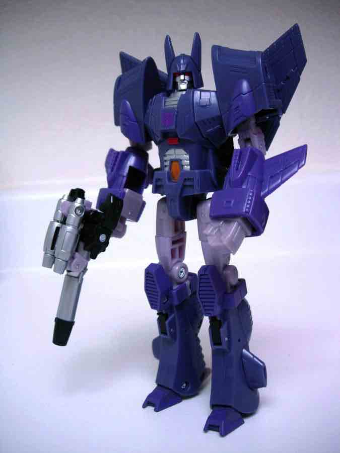 A more movie (or TV) accurate Transformers repaint is typically the domain of Japan, but this Cyclonus was part of a three-pack (also with Galvatron and Rodimus) distributed primarily in China. Despite being in American packaging, this set was never sold in the USA, but units were distributed at a Canadian convention at which a false rumor got out that this set would be a Target exclusive in the USA. Boy, that's annoying isn't it?