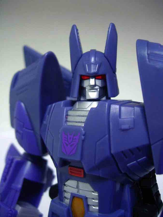 A repaint of a 2008/2009 figure (which was also repainted for the Japanese market and as a red "Shattered Glass" figure for the Transformers Collector's Club), Cyclonus stands 6-inch tall and is arguably Hasbro's crown jewel in robot sculpting. The vehicle mode is excellent, but the robot is so good that at first glance it could probably pass for a non-transforming action figure. He's loaded with articulation and is painted up quite nicely. One big improvement over the previous US release was Hasbro's decision to paint the figure's face. The grey plastic used before sucked out all the detail, but with a splash of silver you can really see all the features pop nicely.