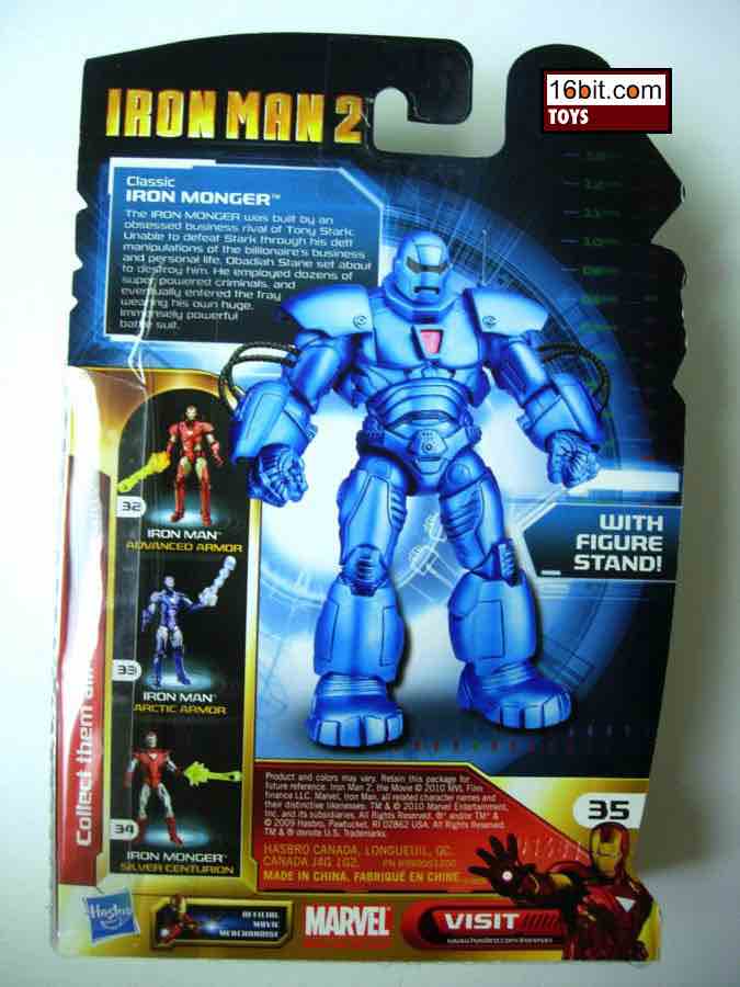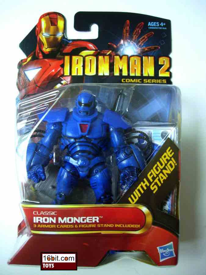 Oh baby! I wasn't collecting Hasbro's Iron Man line but I stumbled on this at a Kmart and basically went nuts over it. The DVD window toys for Iron Man 2 are really good, with bizarre and awesome repaints and giant hulking robot suits like Iron Monger here. In the movie Iron Monger used cast-off parts from the original armor, whereas in the comic... well, I don't read many comics, but I did research the comic art and this figure matches really nicely. It's wonderful. Surprisingly, it's also a reused Hulkbuster Iron Man body with new bits and pieces like the head, feet, shoulder armor, and hands. Take note, toymakers: this is how you reuse a mold.
