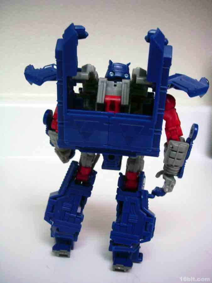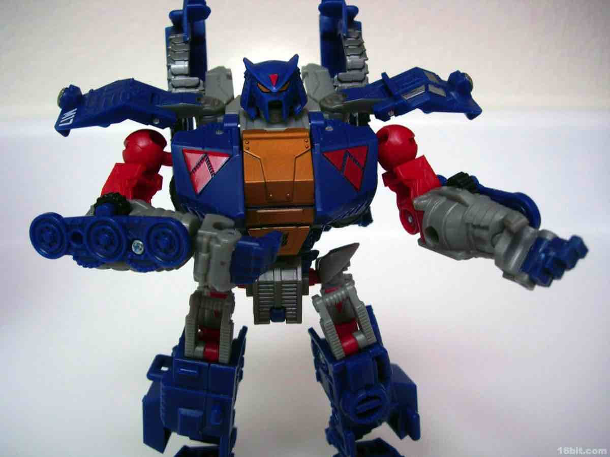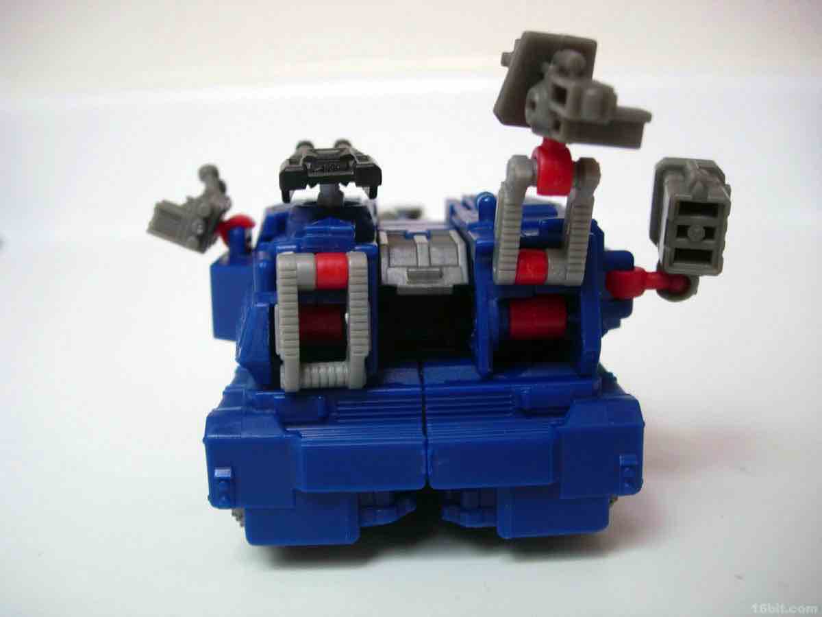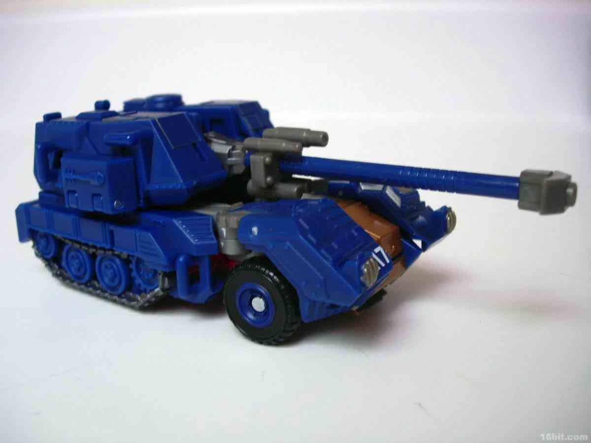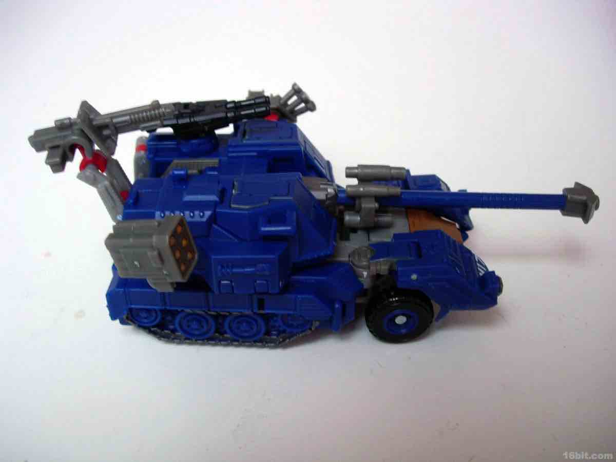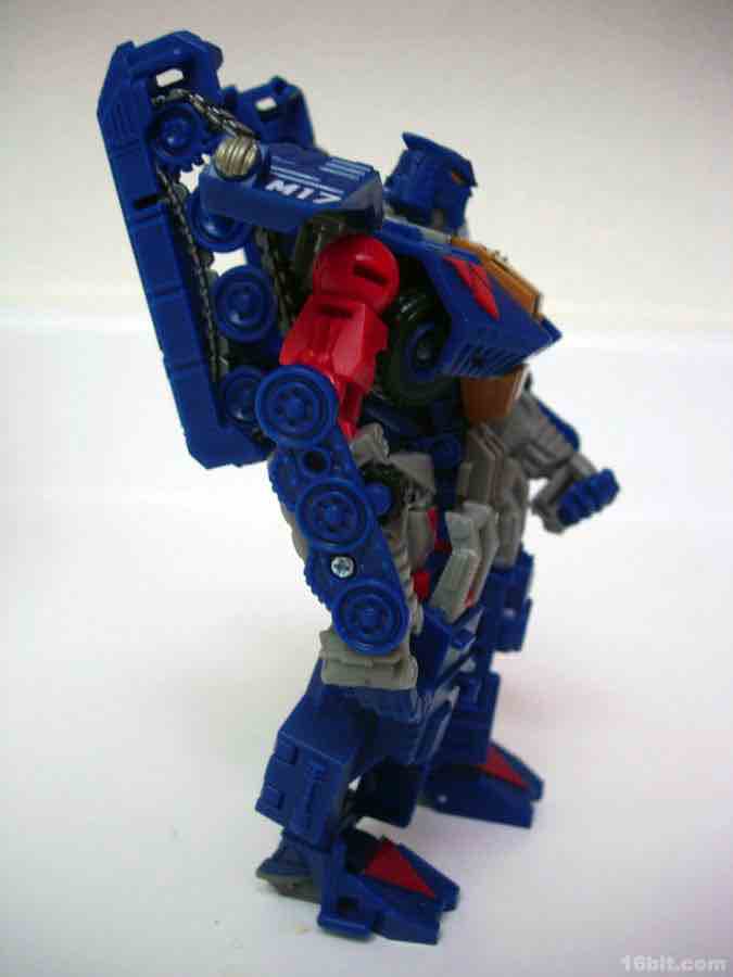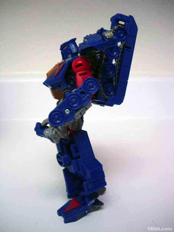 The toy is technically a triple-changer of a character you don't know with a really great robot mode, a top-notch vehicle mode, and a sort of a base mode thing that's about as much of a wonderful creation as taking a dump in a sack of M&Ms. Sure, you can do it, but why? The halftrack vehicle mode is, as most vehicles, just fine. There aren't any firing weapons or anything kooky, but the toy does have a series of small bars which allow the use of clamp-on guns or other weapons. If you're into it.