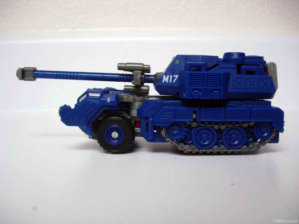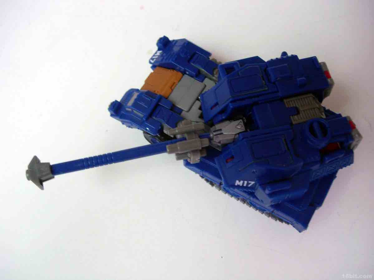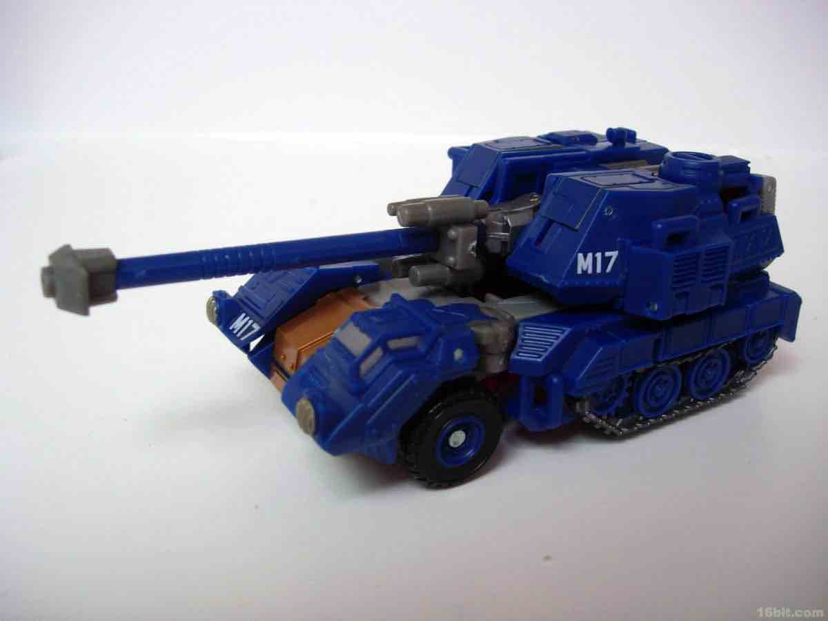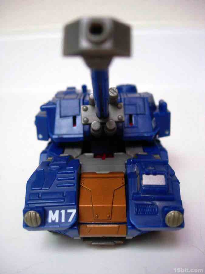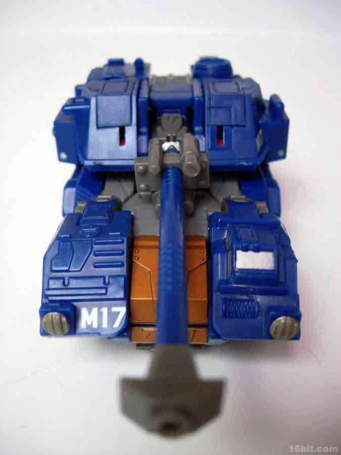 Standing about 6-inches tall, Darkmount is a tank that turns into a robot based on his comic book appearances. In case you were curious, he debuted in Marvel's Transformers #17, which is why he says M17 on the side of his tank mode. His coloring, according to the Transformers Wiki, was the result of Hasbro getting a look at a piece of art from a fan publication given to them by the great and powerful Monzo, a super-fan who's a really nice guy if you get the chance to speak to him. But I digress.