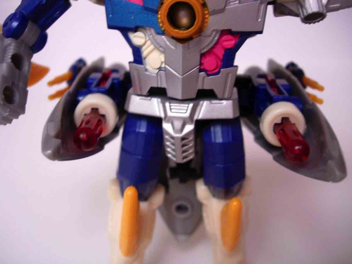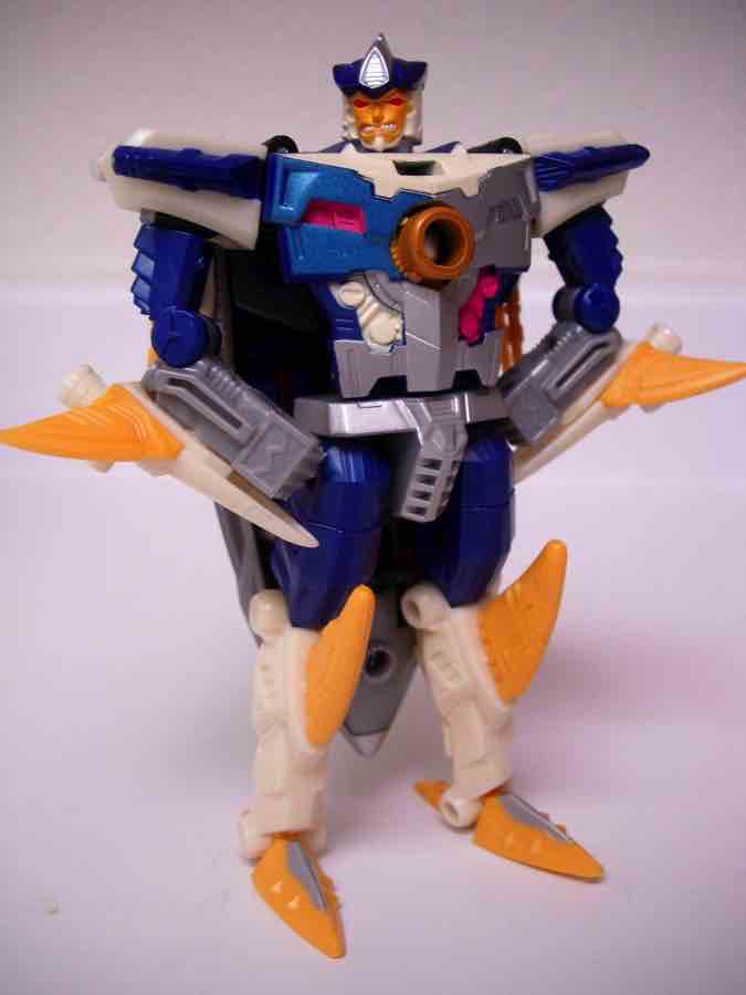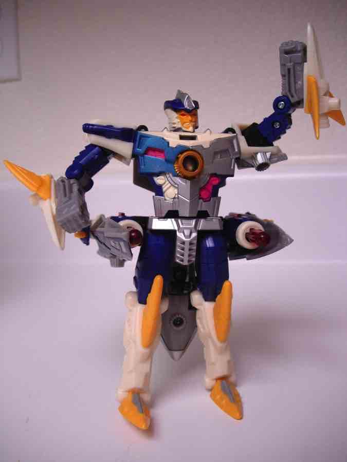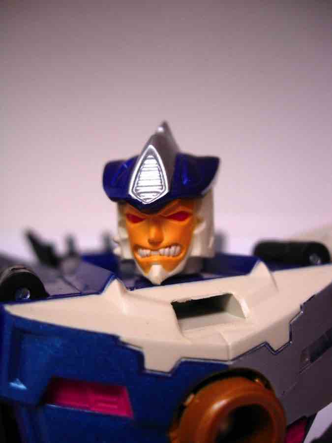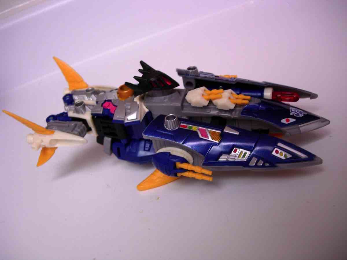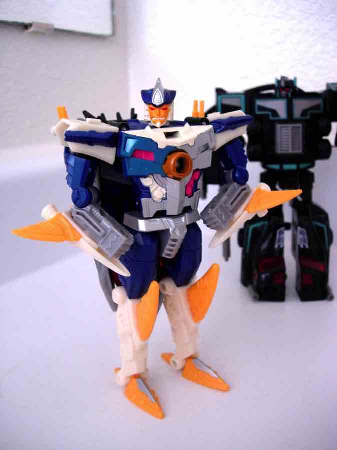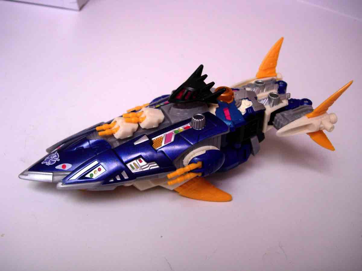 The greatest shark around Sky-Bite is a character from the Robots in Disguise series which has now been shoehorned into G2/G2/Wings of Honor, depending on how you want to look at things. The character, which is quite popular with a segment of the fandom, was originally a repaint of Transmetals II Cybershark, and this particular release was a repaint of Energon Sharkticon. Poor guy, can't even get his own mold! This time he does get a new head sculpt.