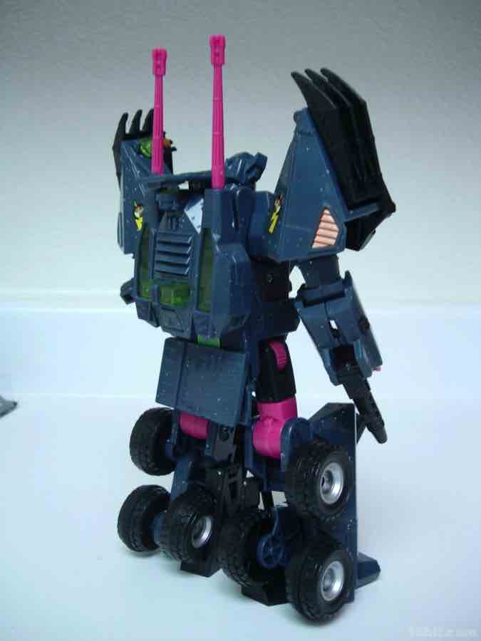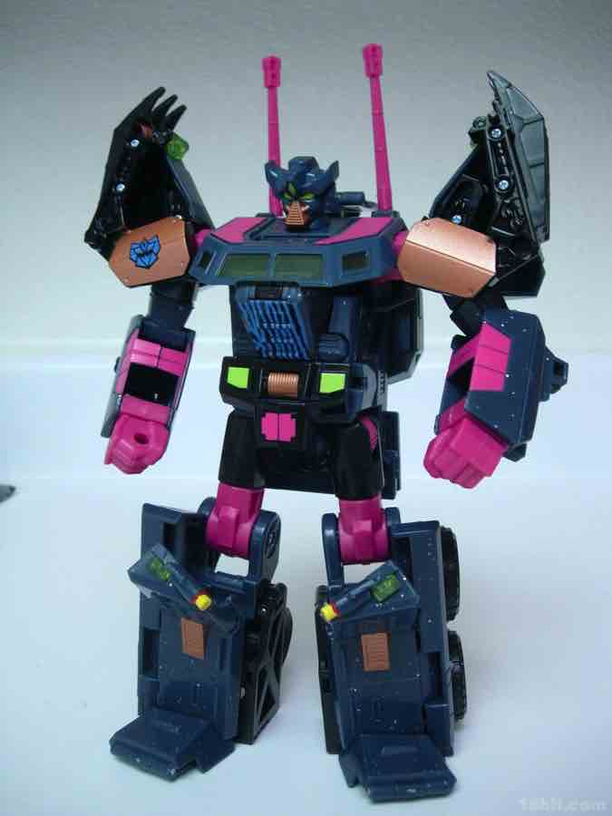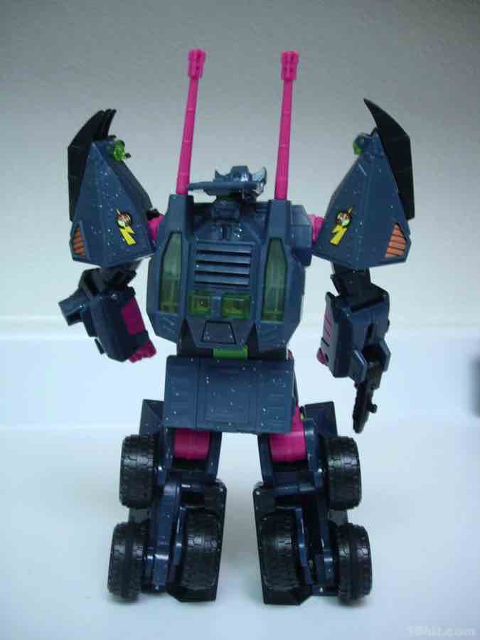 Another Generation 2 (G2) toy better known for being sold outside the USA, Clench (or Colossus in some territories) may be the most spectacularly 1990s toy in this entire collection. While based on the 2008 Onslaught body, Hasbro and Fun Publications combined forces and a lot of paint to bring you this amazing tribute to a time when it was more or less still acceptable to make a boy's toy with glitter and sparkles. Clench has pink, his dark green is mixed in with sparkles, and there's really no easy way to reconcile how the toughest, meanest toy in the set has been painted in such a way where it doesn't look like a traditional Decepticon warrior.