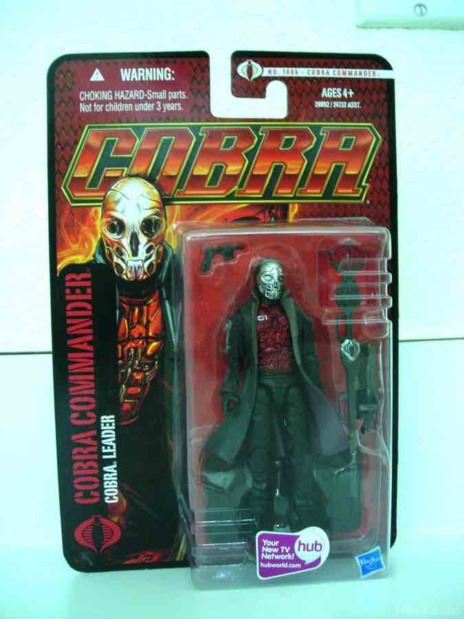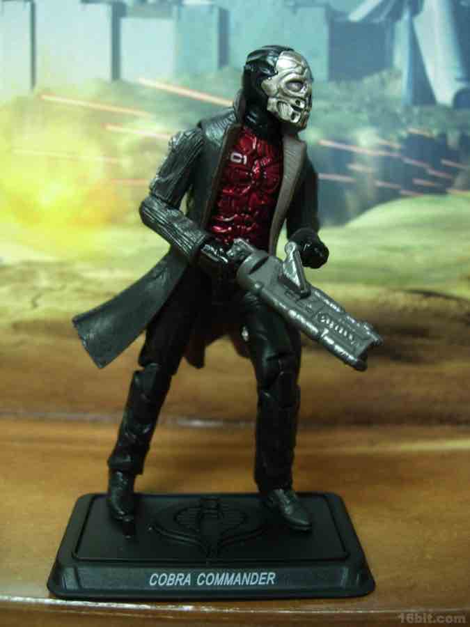 Have you ever bought an action figure because it was kind of dumb and you thought it was funny? That can be dangerous, as this Cobra Commander proved to be less a dumb impulse purchase and more of a gateway buy. This figure was meant to be a special mail-in figure, which was aborted when Hasbro realized they could just slip it into the basic figure assortment. This Cobra Commander is largely based on the design of the 2009 movie toy, with a newly tooled head and a much better looking paint job. A little vac-metal can go a long way, and the figure's big coat and thin build really set him apart from the muscular men and women fighting with or against him. He's a little scrawny, but he has a big honking gun and a stick with a Cobra logo on it. Oh, and he has this red metallic armor with "CCI" written on it. It's a neat piece.