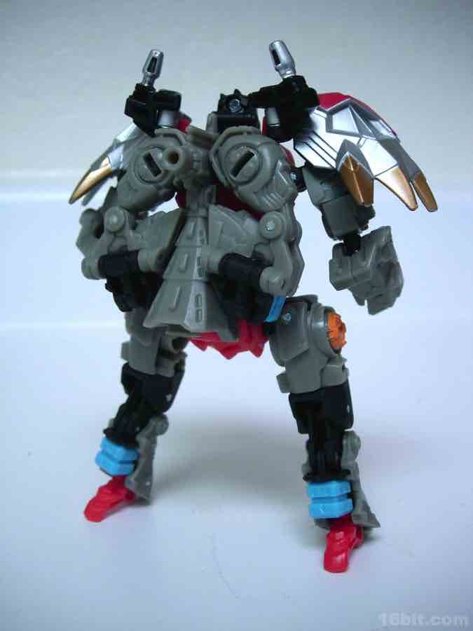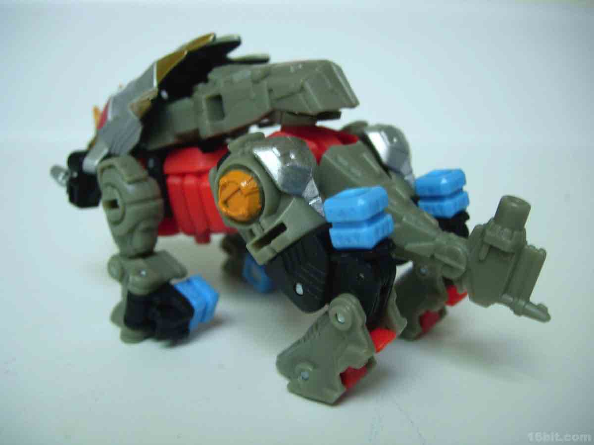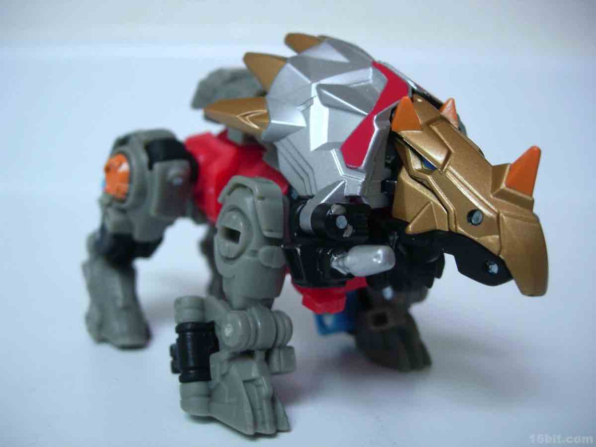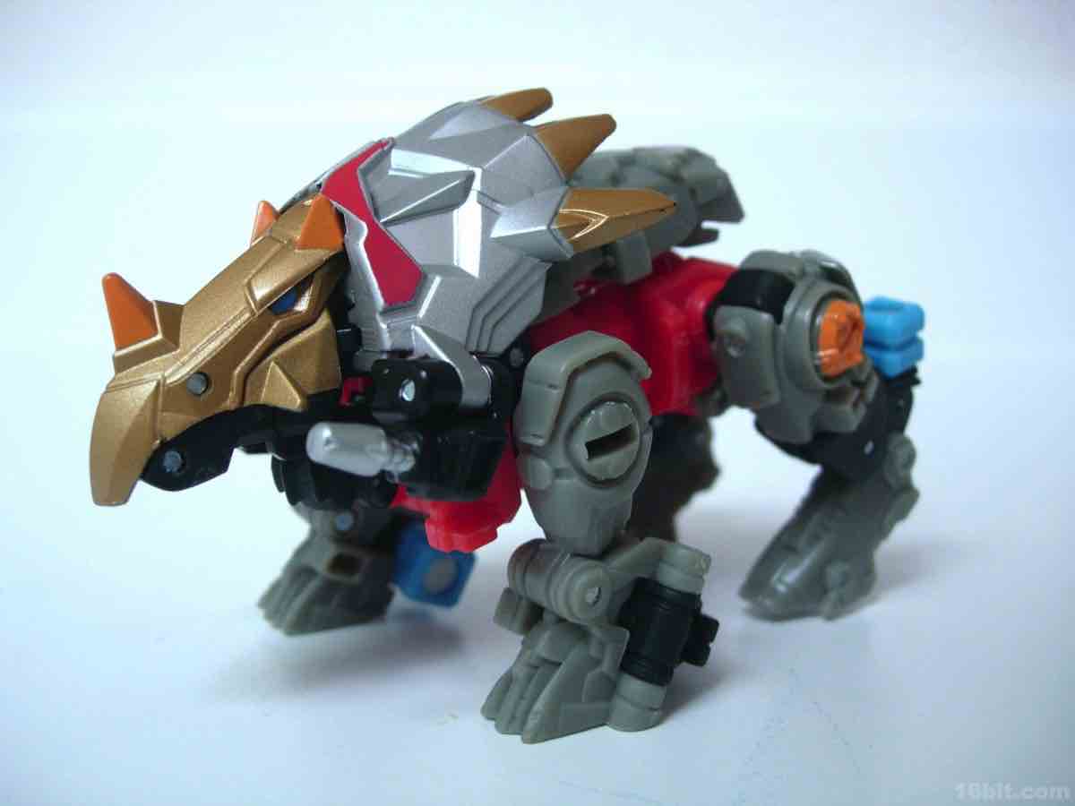 At Toy Fair 2010, the super-ambitious Power Core Combiners sub-line was introduced as, seemingly, a lost descendant of the Armada/Energon/Cybertron toy lines. Unique five-piece spring-loaded combiners with Mini-Con compatibility brought new characters like Grimstone to life, in this case the only (so far) creature-based combiner in the line. Grimstone seems to mesh dinosaur-based Zoids toys with a slight G1 cartoon Dinobot aesthetic to result in.... well, frankly, a damned mess.