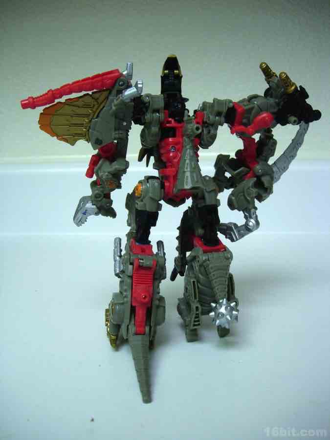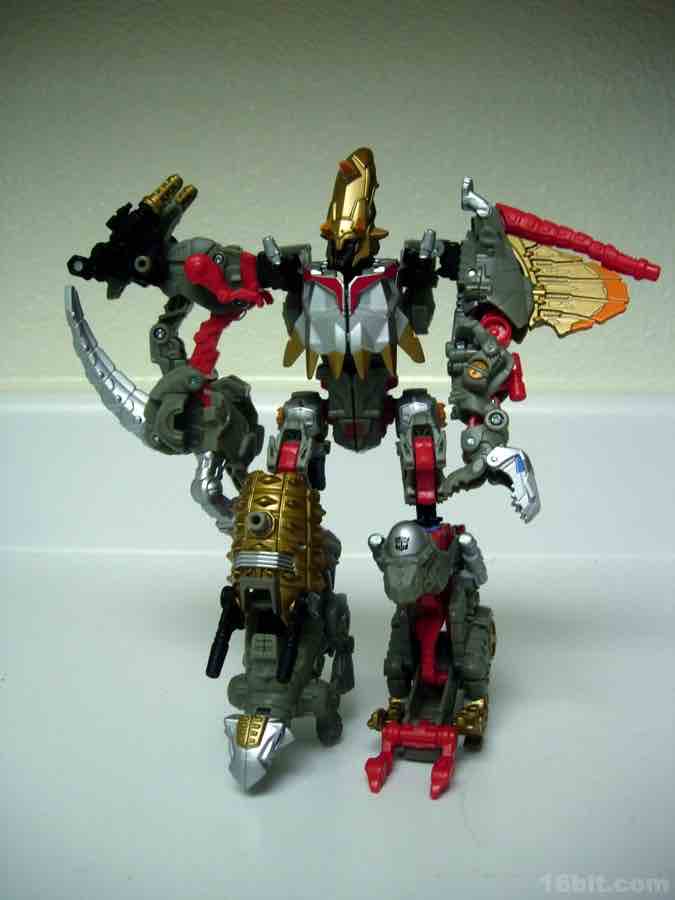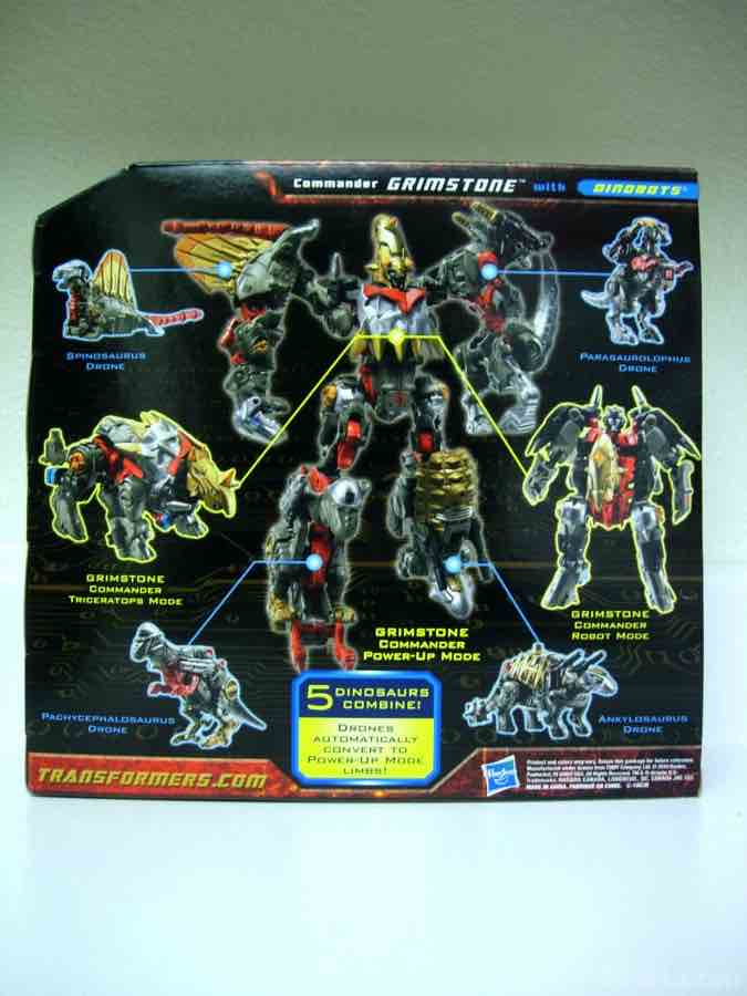 Item No.: Asst. 98461 No. 28607 Manufacturer:Hasbro Includes:Figure with 4 dinosaur drones Action Feature:Transforms from dinosaur to robot Retail:$19.99 Availability: November 2010 Other: Marge Simpson, Fran Sinclair, and a G1 Dinobot had a 3-way