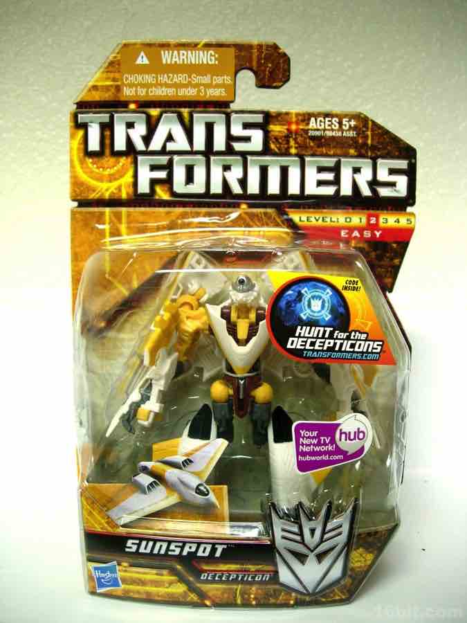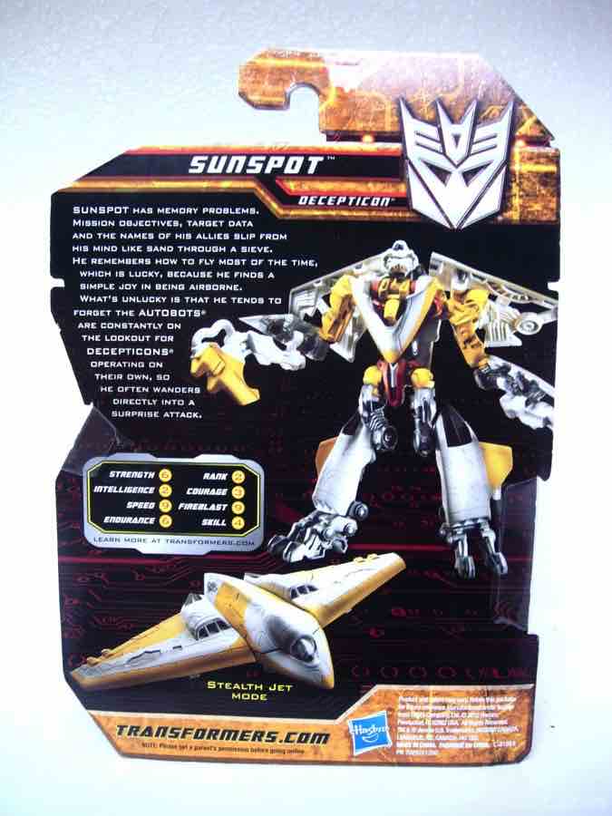 The Scout-class toy (previously basic-class toy) are clearly the red-headed stepchild of the Transformers franchise, as the sub-$10 price point has been steadily creeping up to the point where these smaller toys like Sunspot cost the same as their larger, deluxe counterparts at Wal-Mart several months out of the year. While not a bad toy, retail logic dictates you can't charge the same price for a big toy than you do for the smaller, entry-level ones. Hasbro's trying to axe this segment, but before they do they're making a few last molds and squeezing out a few more repaints like this one.EDIT: This is speculation-- based on new Scout-sized toys of the past year, the seeming turnover I've seen at retail, the frequency of new product, and a couple of leaked toy images, it feels like this segment is getting the short shrift. We'll know for sure over the next month as Toy Fair confirms whatever it is we're going to buy between now and Comic-Con 2011.