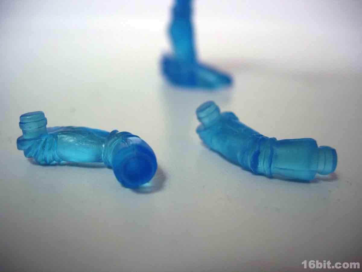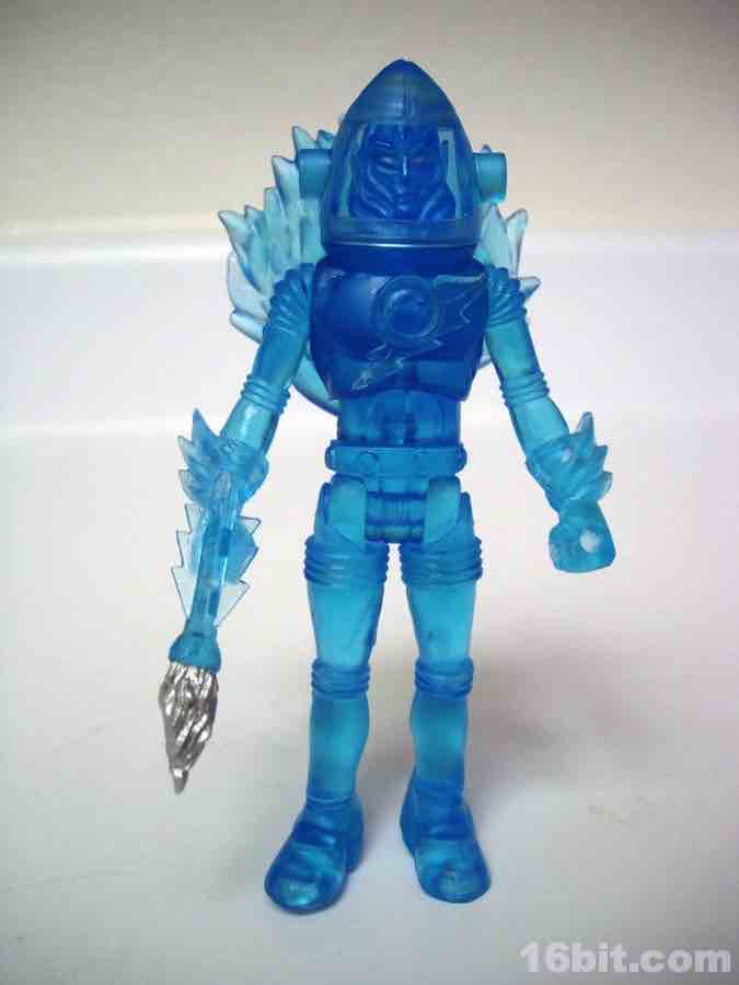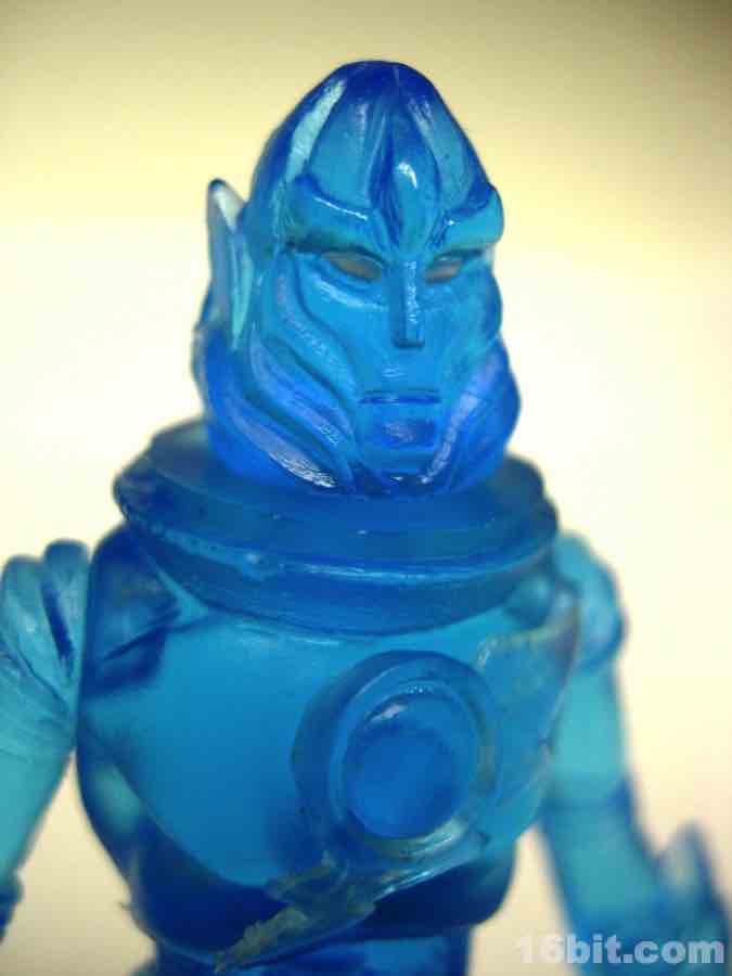 Standing about 3 4/5-inches tall (at the top of his removable helmet), this figure follows a clear red, a clear yellow, and a fully-painted release. Squeezing the most money out of a mold is always a smart move in the toy business, and it seems to be par for the course with anyone making Glyos-compatible action figures. This sharp blue has an electric glow to it, it's easily one of the best clear figures to be produced in this line so far.