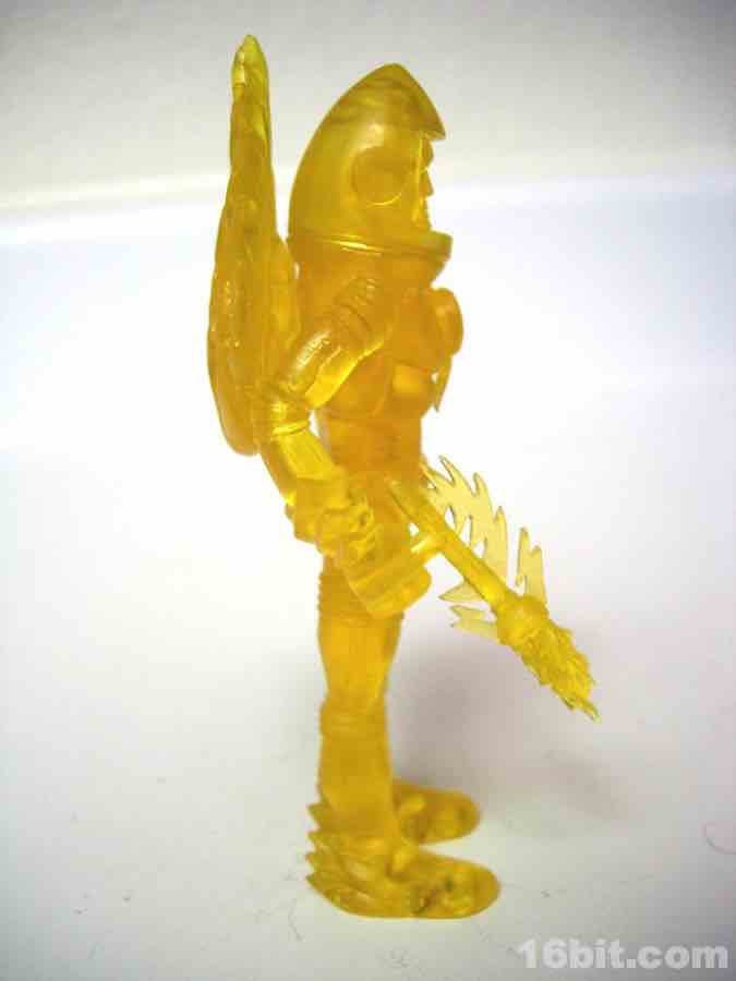Like the others this Inferno is roughly 3 4/5-inches tall, and can be torn apart so you can swap his parts with other Glyos-compatible figures. (In December 2010, Onell Design actually made a number of Glyos upgrade parts with a matching shade of yellow-- nifty upgrades, I hear.)