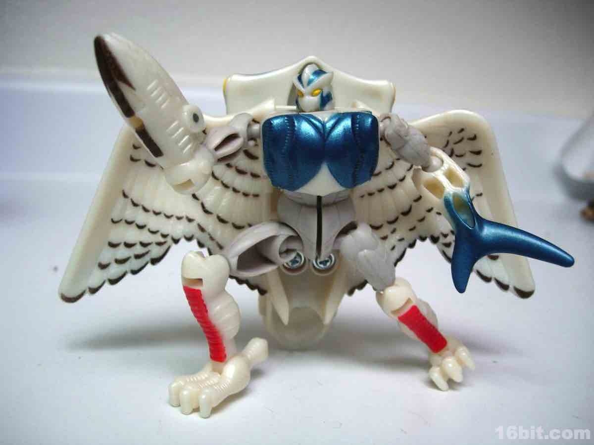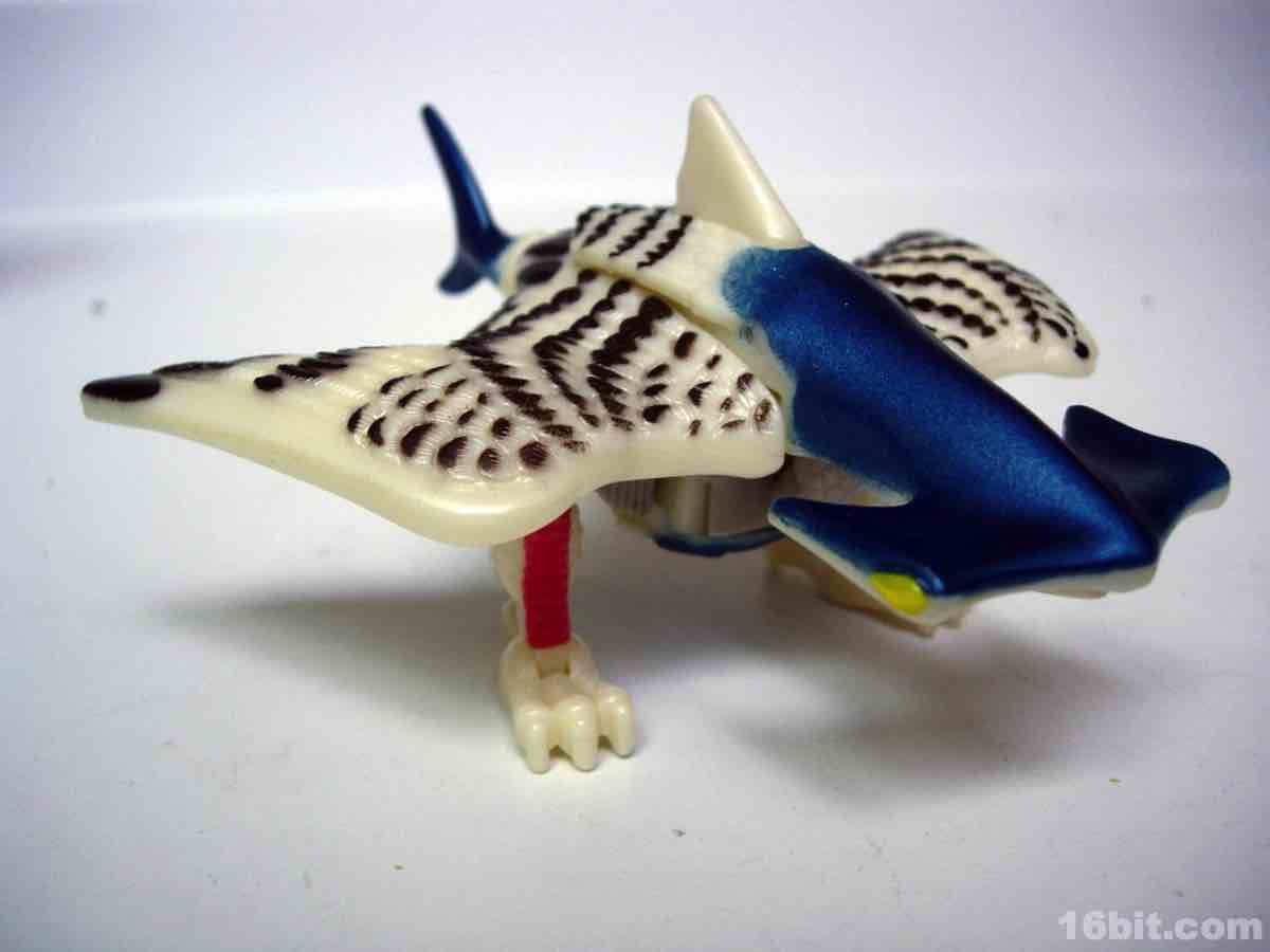 Rather than tackle real-world creatures-- of which there are many-- that have never appeared in Beast Wars, Hasbro opted to start their own robo mash-up and gave us figures like Air Hammer. While it can never be certain if a designer lost a bet or won one, one thing is for sure: if a hammerhead shark ever mates with an eagle, it's not going to look very majestic.