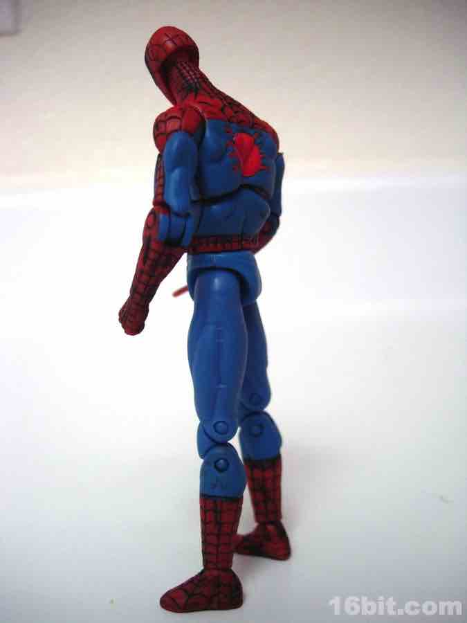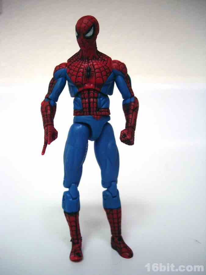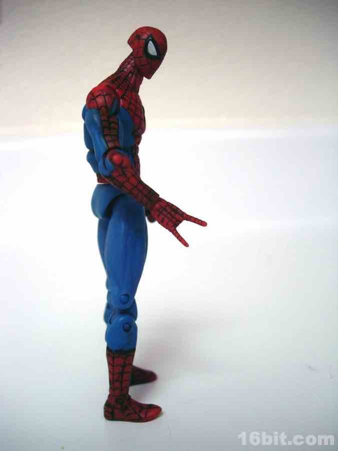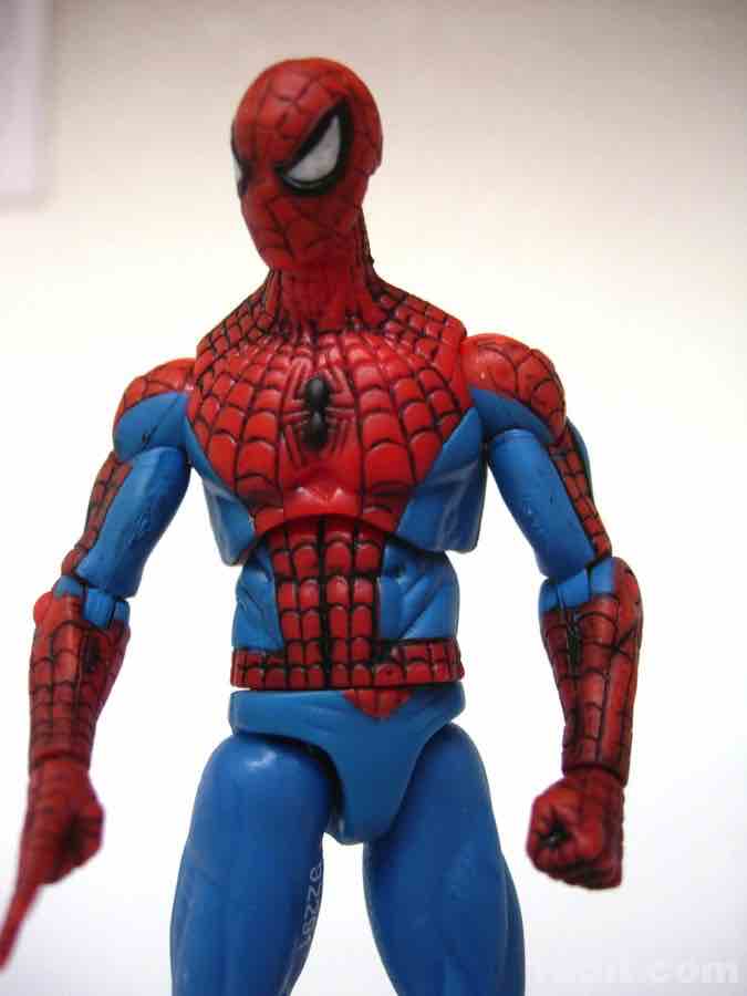 There's nothing bad about the figure's design or sculpt, but there is one significant flaw that came after the deco stage. For some reason, some jerk decided it would be a good idea to put a white date stamp on Spider-Man's inner thigh, and this 5-digit number is clearly visible from the front. It's not like it's off to the side or in the back, but it's right up front in a very visible place. (Due to the angle of the photos, you fortunately can't see it too easily-- but in the package shot it's right up in your face.) I'm not sure why Hasbro did this, but they also started etching in numbers on some of their other lines. It's just bad form, and it'll likely raise another generation of crazed fans who have to go research what these stupid things mean. It's better just to hide them.