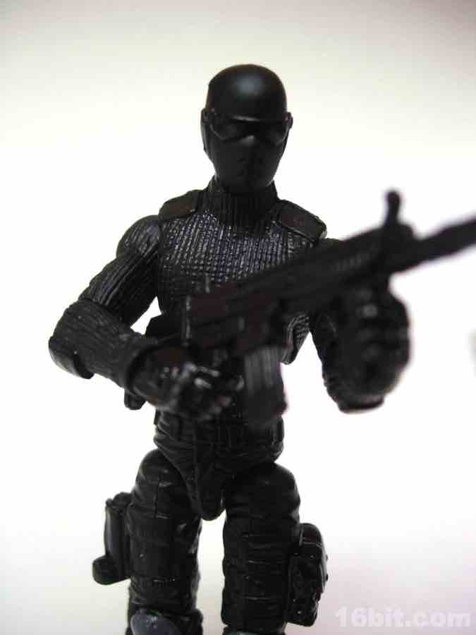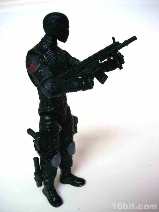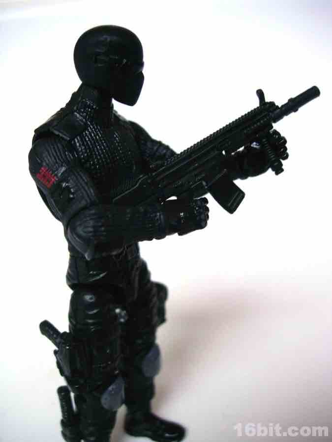 Hasbro G.I. Joe Pursuit of Cobra Snake Eyes Action FigureHe has no real problems holding any of his gear, and it's rare to see so many bits and pieces as being removable extras. Even the head can be changed out-- if you don't like the default 1982-style head with the goggles, a visor based on the 1985 version has been included on an alternate head. And a fun bit of trivia-- originally Hasbro told fans each head would be packaged separately, so you'd have to look for a variant in stores if you wanted both versions of the noggin. Thankfully, they opted not to do this, although I admit it's a clever way to move more units. To date, Snake Eyes has been incredibly popular and in my findings often sold faster than the presumed most-popular figure, the Cobra Shock Trooper.