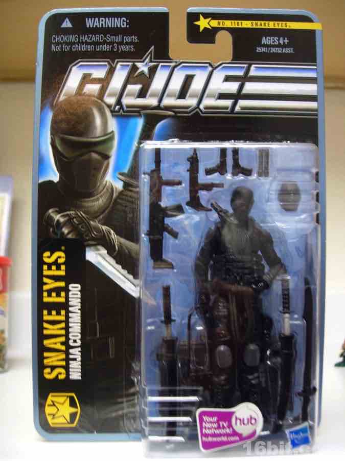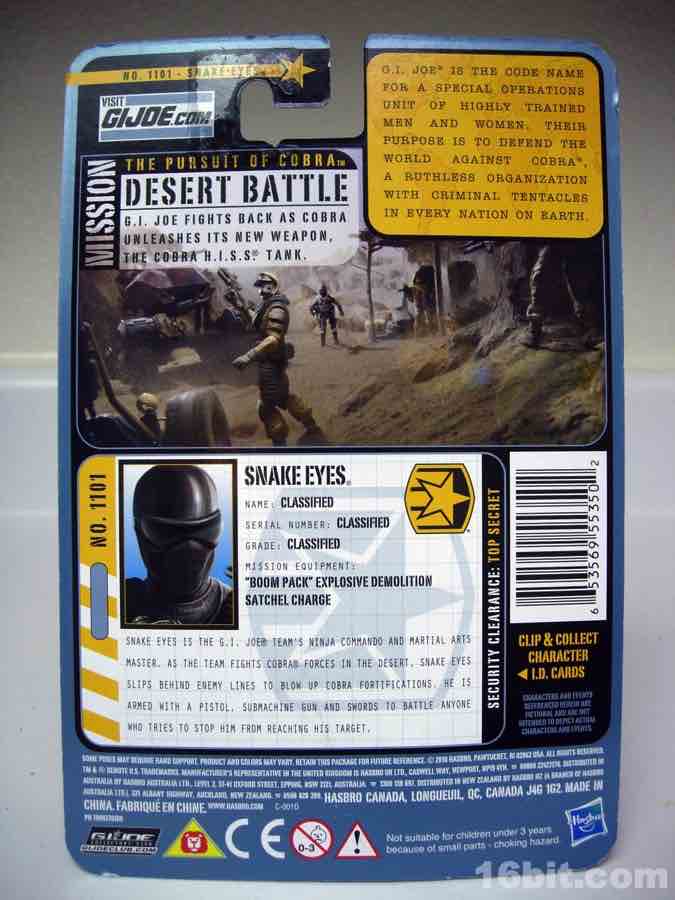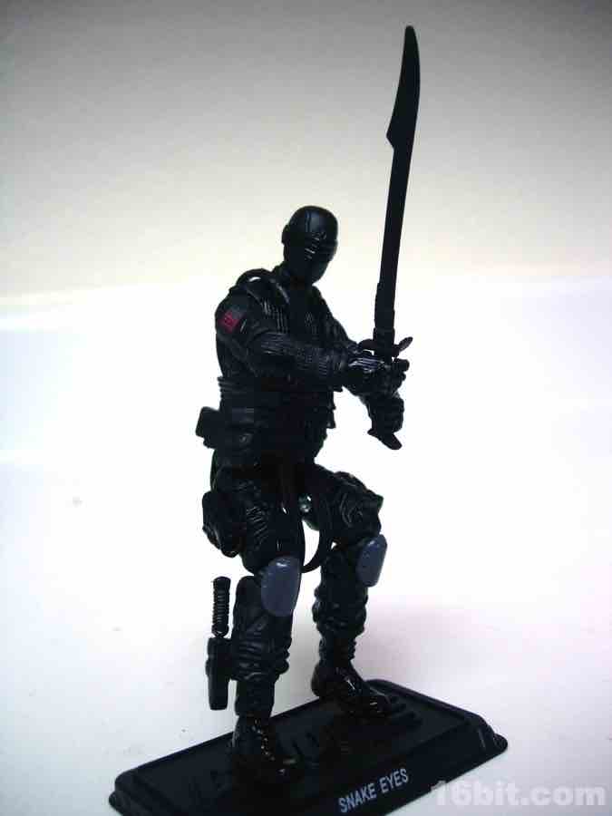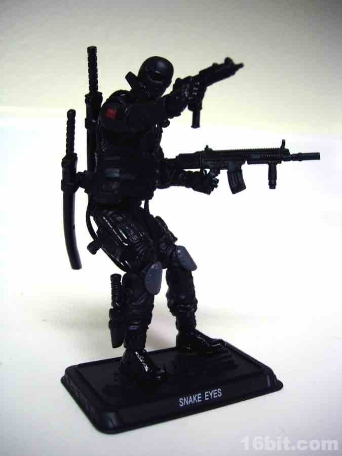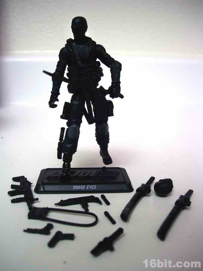 Hasbro G.I. Joe Pursuit of Cobra Snake Eyes Action FigureBehold! The greatest figure of late 2010 and most likely all of 2011 is this Snake Eyes. I know it's early in the year, but trust me-- Hasbro pulled out all the stops here. For the asking price, Hasbro really outdoes themselves by giving fans so much crap, you're going to lose some of it. The twin silencers may be the tiniest accessories packaged with a figure of this scale in some time, and there's only one holster on Snake Eyes to store one. The other, well, I hope you've invested in ziplock bags or tackle boxes to store all the extra gear.