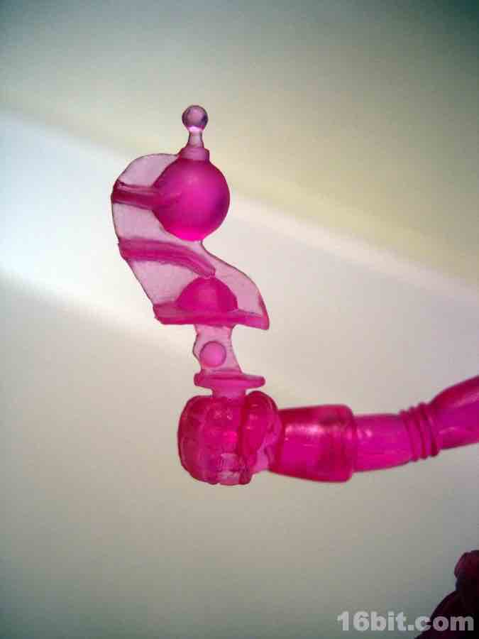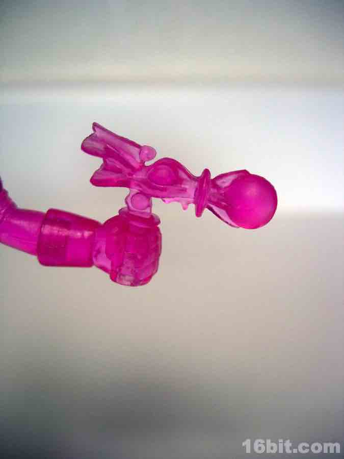 Given the fact that the figure was limited to about 300 pieces and did not sell out at New York Comic-Con in 2010, or in the following few months, I'd say that I'm not wrong in my assessment that this wasn't a fantastic color for the figure. (That, or people got sick of not having the regular editions.) The main reason to pick this one up is if you simply must have them all, or if you enjoy swapping out the parts and pieces with other Glyos system toys. I really do get a kick out of that, so I posted some mix-and-match images below. If that sort of thing turns your crank, by all means get this. If not, just get the standard Infinity Edition release-- it's gorgeous, painted nicely, and has wonderful packaging. This one... is pink.