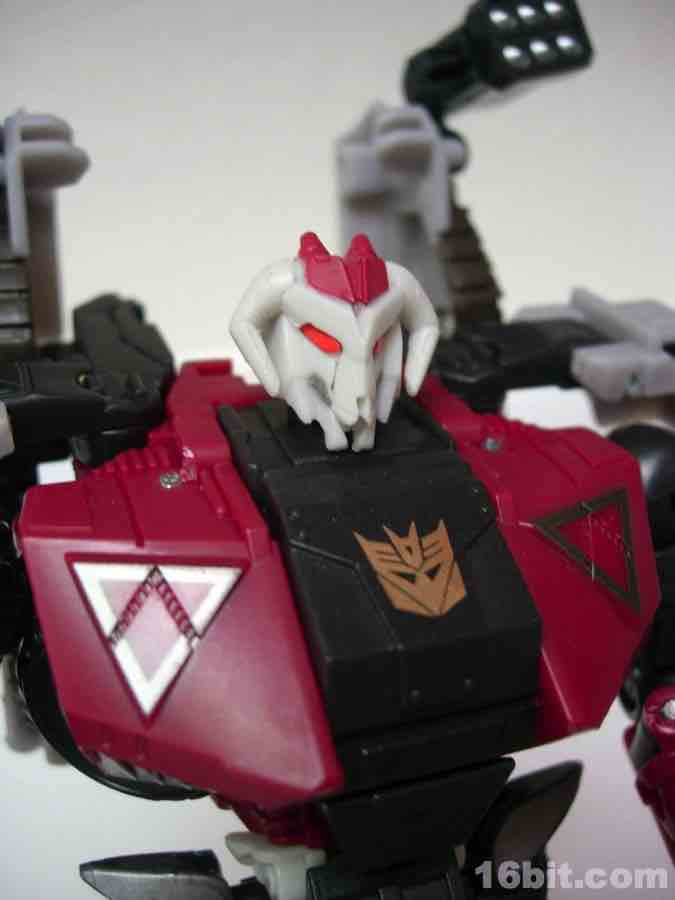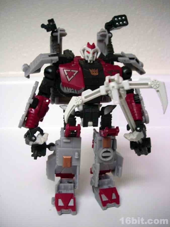 The 6-inch tall robot takes the toy of Darkmount and gives him new paint and a new head. Personally, I think the grey and pink look way better on the mold than the blues and greys of Darkmount, although the robotic ram's head isn't quite as cool as the original Pretender toy from 1988. The original toy had a sword and gun, but the 2010 release has a giant axe-- I think it works for the bulky monster of a robot, but sticklers for authenticity or holding true to the older toys may be upset. Oh well, thankfully there aren't too many of you.